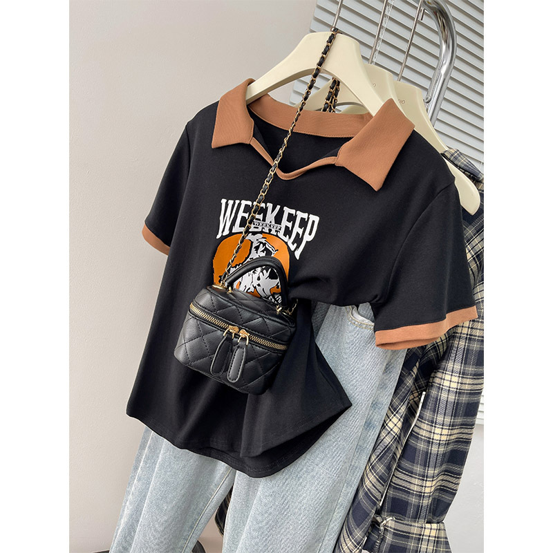 纯棉Polo衫短袖t恤女新款夏季短款宽松翻领设计感大码上衣女