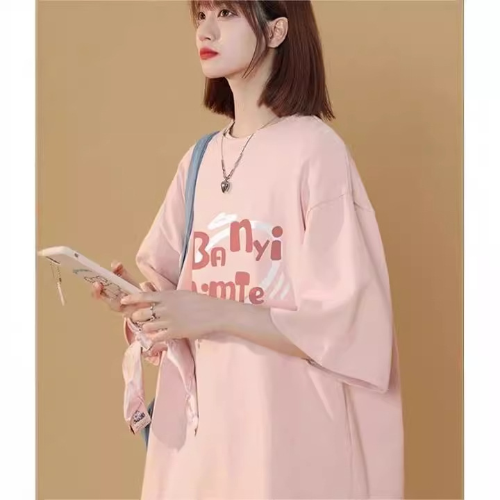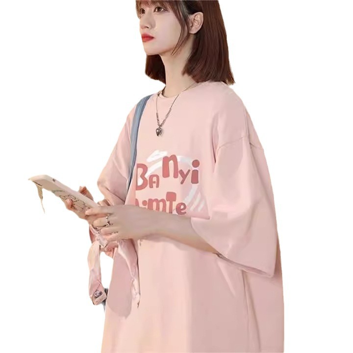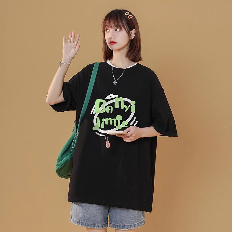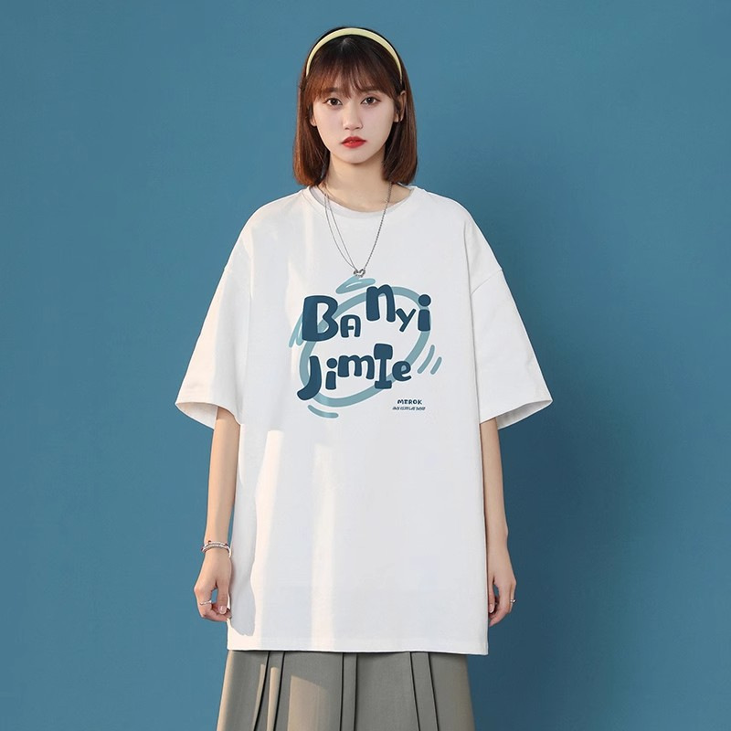 卡通字母印花圆领休闲宽松半袖情侣短袖男女学生体恤潮DT286