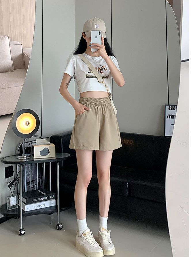 工装短裤女夏季新款高腰宽松工装裤A字阔腿裤韩系百搭三分裤