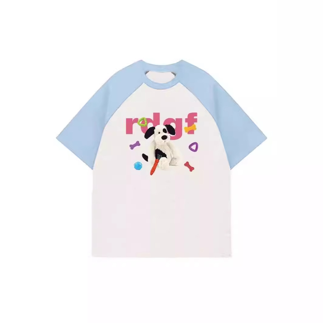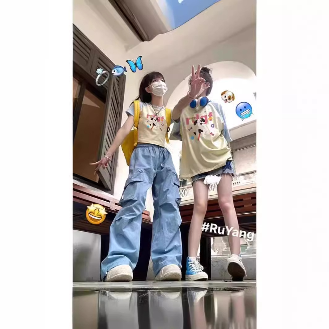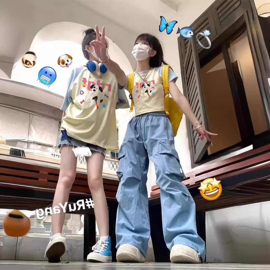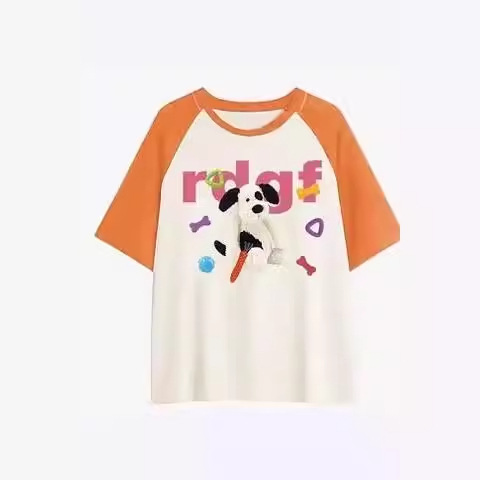 插肩短袖t恤夏日多巴胺女孩穿搭闺蜜装甜辣上衣美式纯棉情侣衫潮