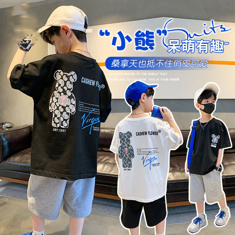 棉质男童女童短袖t恤衫夏儿童打底衫上衣中小童潮范童装