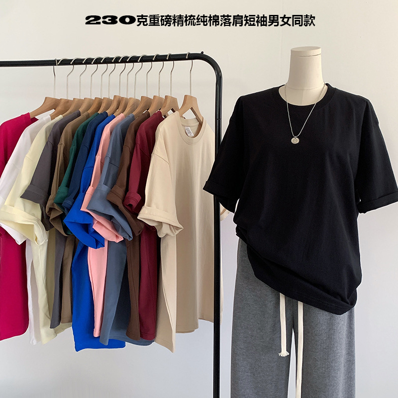 230克重磅纯棉短袖T恤女欧美大码男女装夏季胖MM200斤中长款上衣