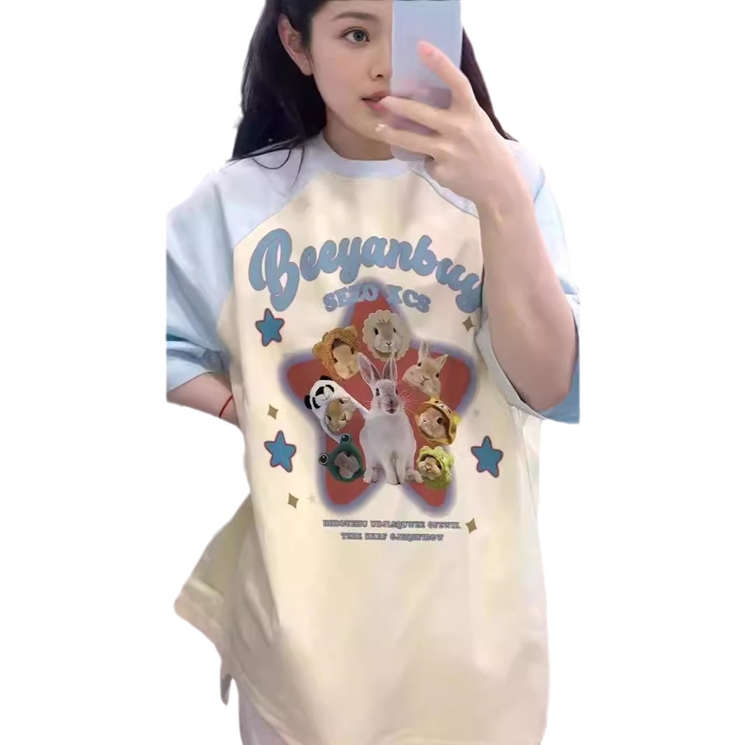 大码纯棉插肩短袖t恤男女潮牌夏季新款小个子设计感小众独特上衣