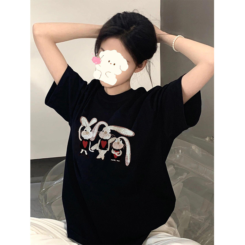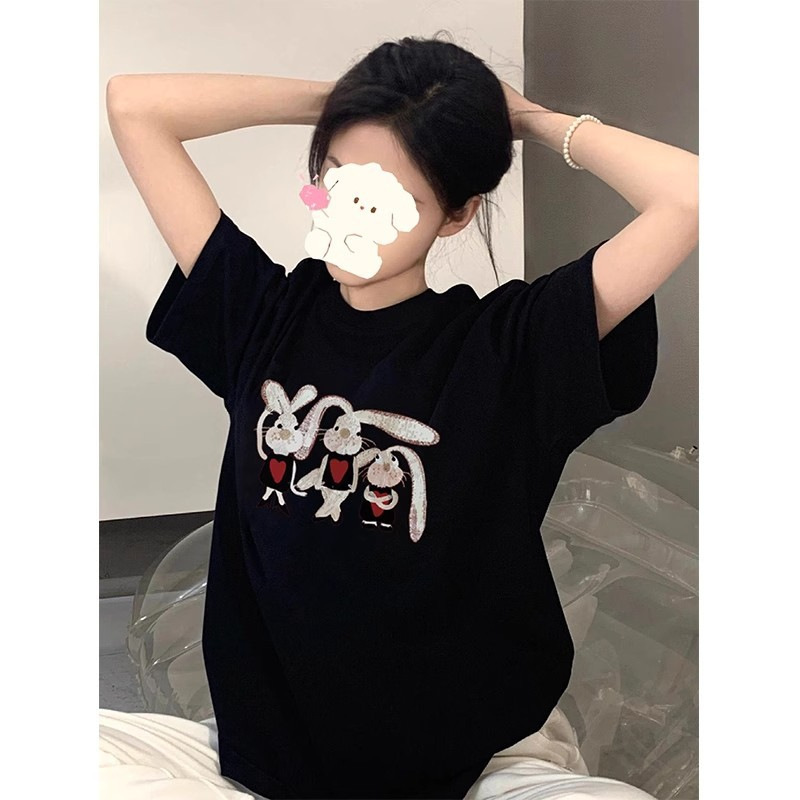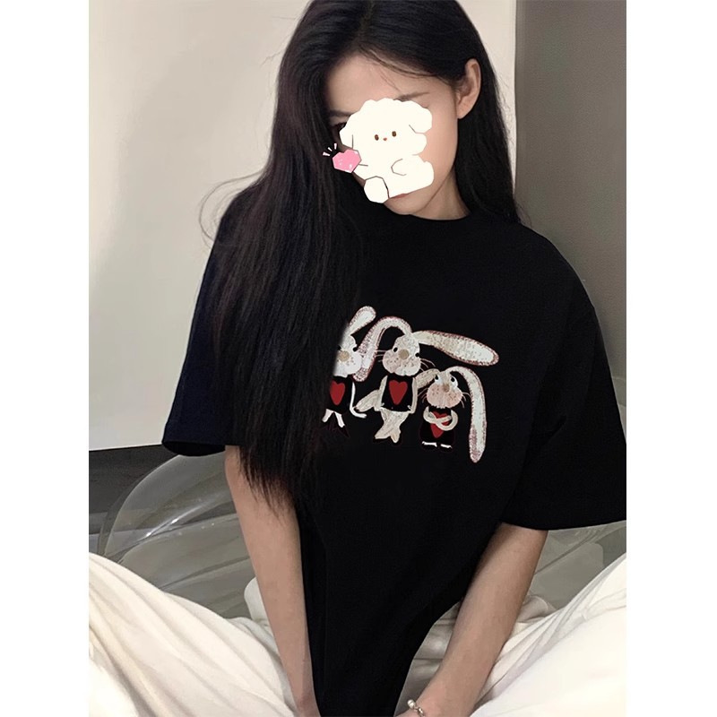 重磅纯棉黑色短袖t恤女ins潮美式复古oversize半袖潮牌宽松上衣服