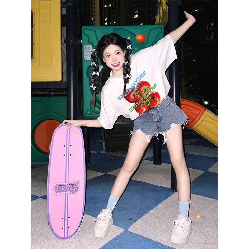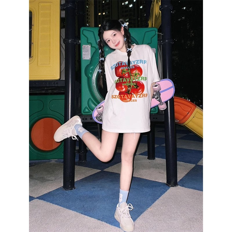 欧美大码女装宽松遮肉oversize韩版短袖T恤慵懒纯棉洋气百搭上衣