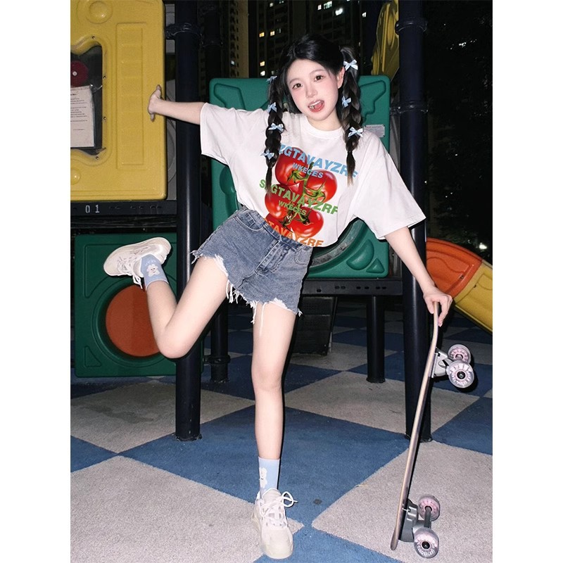 纯棉设计感小众短袖t恤女夏季新款宽松大码半袖洋气减龄上衣潮牌