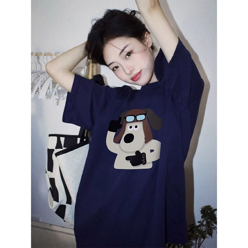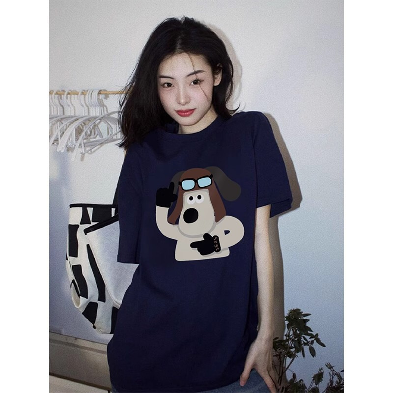 纯棉重磅设计感卡通小狗短袖t恤女夏季新款小众潮牌宽松半袖上衣