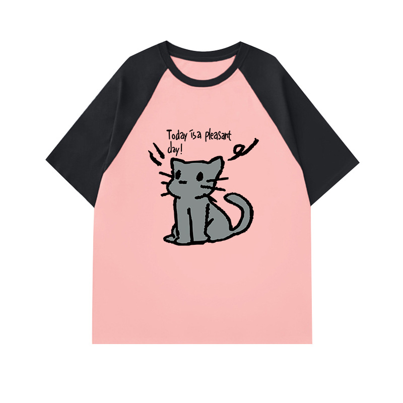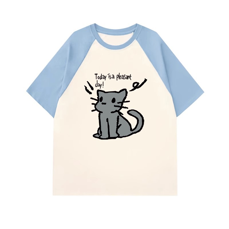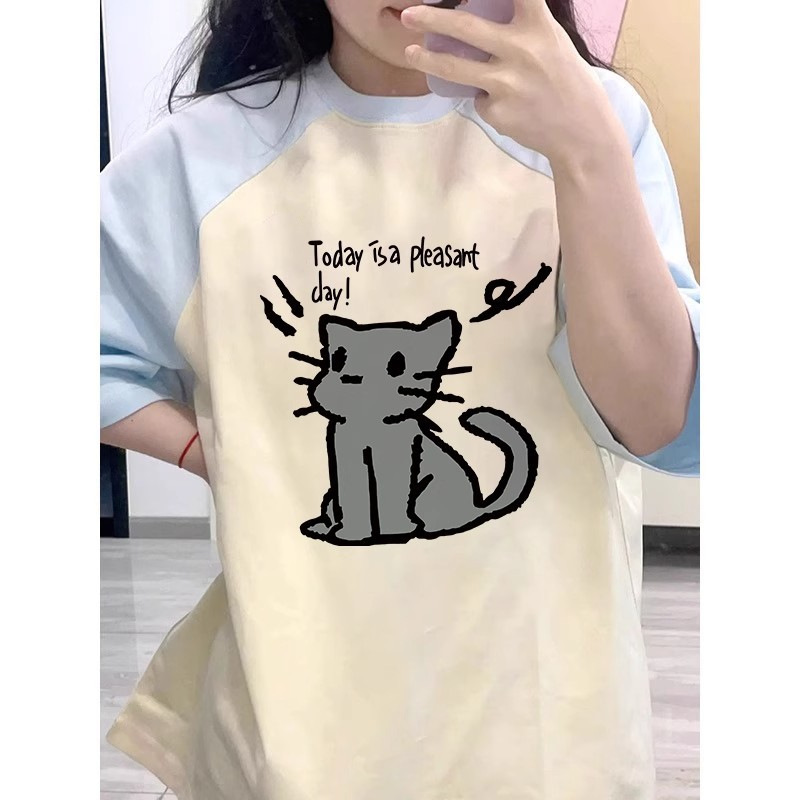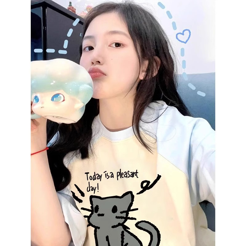 插肩袖撞色纯棉重磅短袖t恤女夏季设计感小众绝美宽松上衣体恤潮