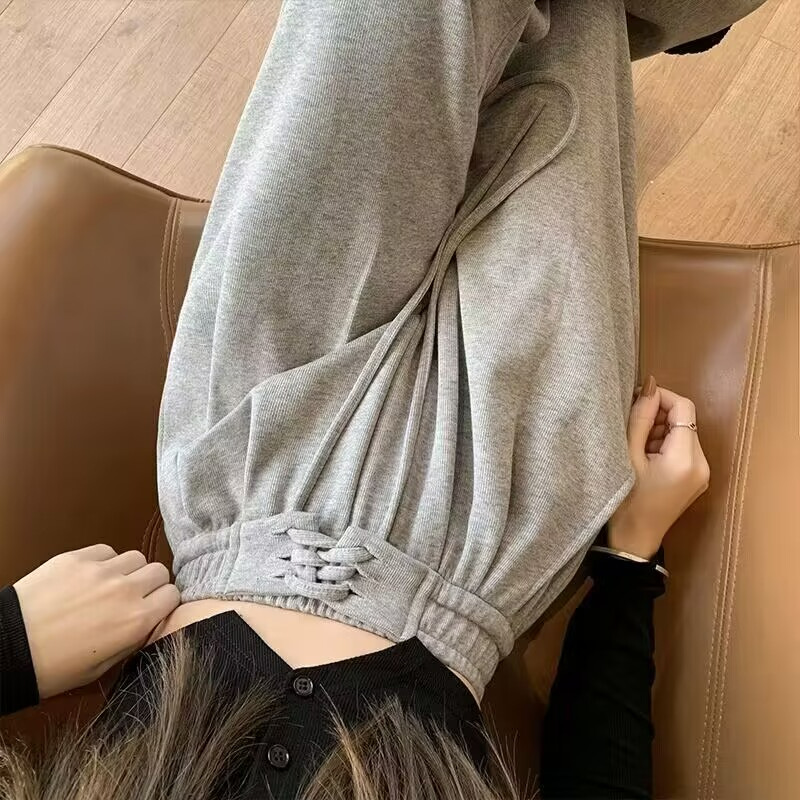 春秋新款绑带运动裤高腰垂感窄版直筒拖地休闲学生卫裤女潮