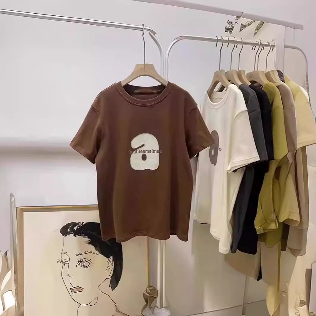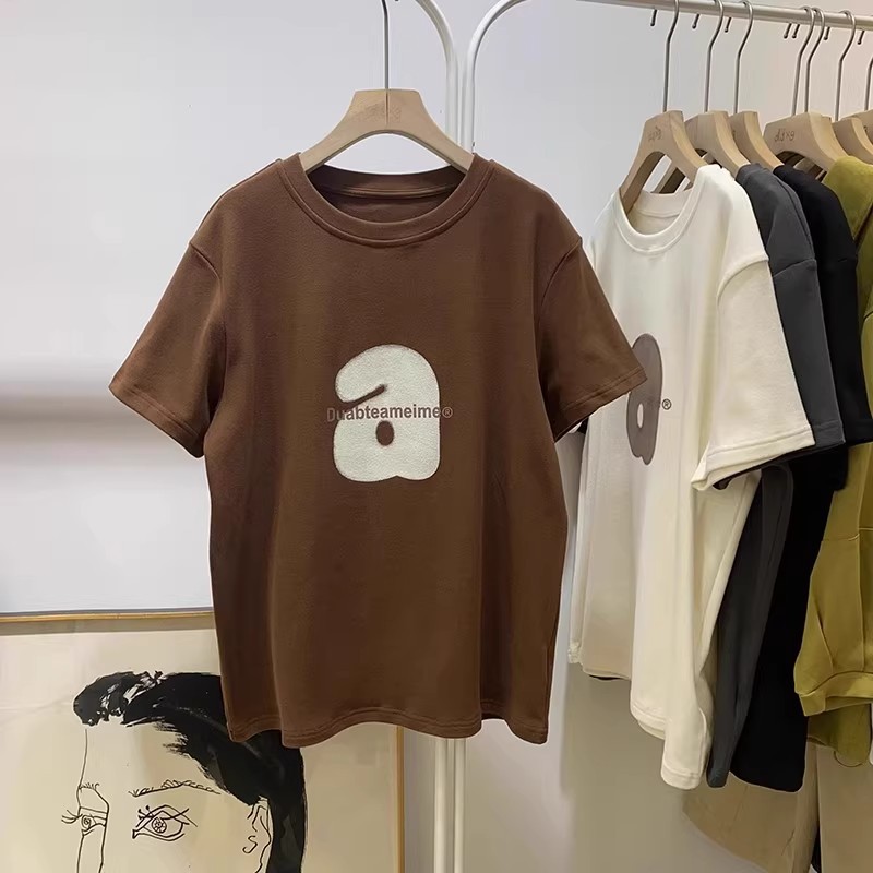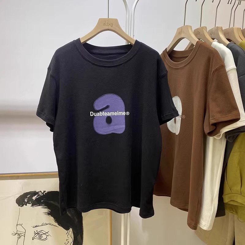 纯棉重磅复古字母印花短袖t恤女夏季新款情侣休闲百搭打底上衣潮