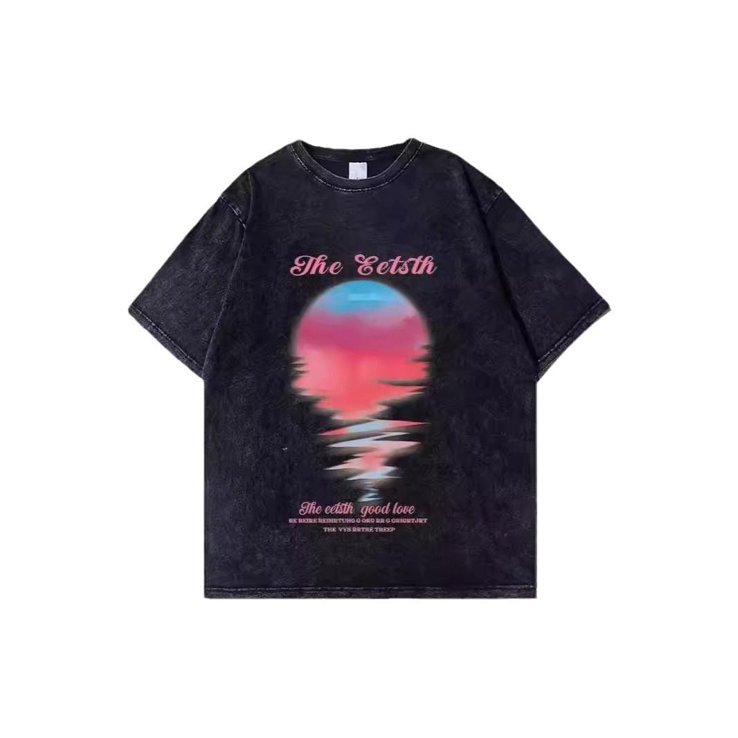 欧美复古水洗做旧纯棉t恤女夏季短袖宽松大码半袖情侣装上衣潮牌