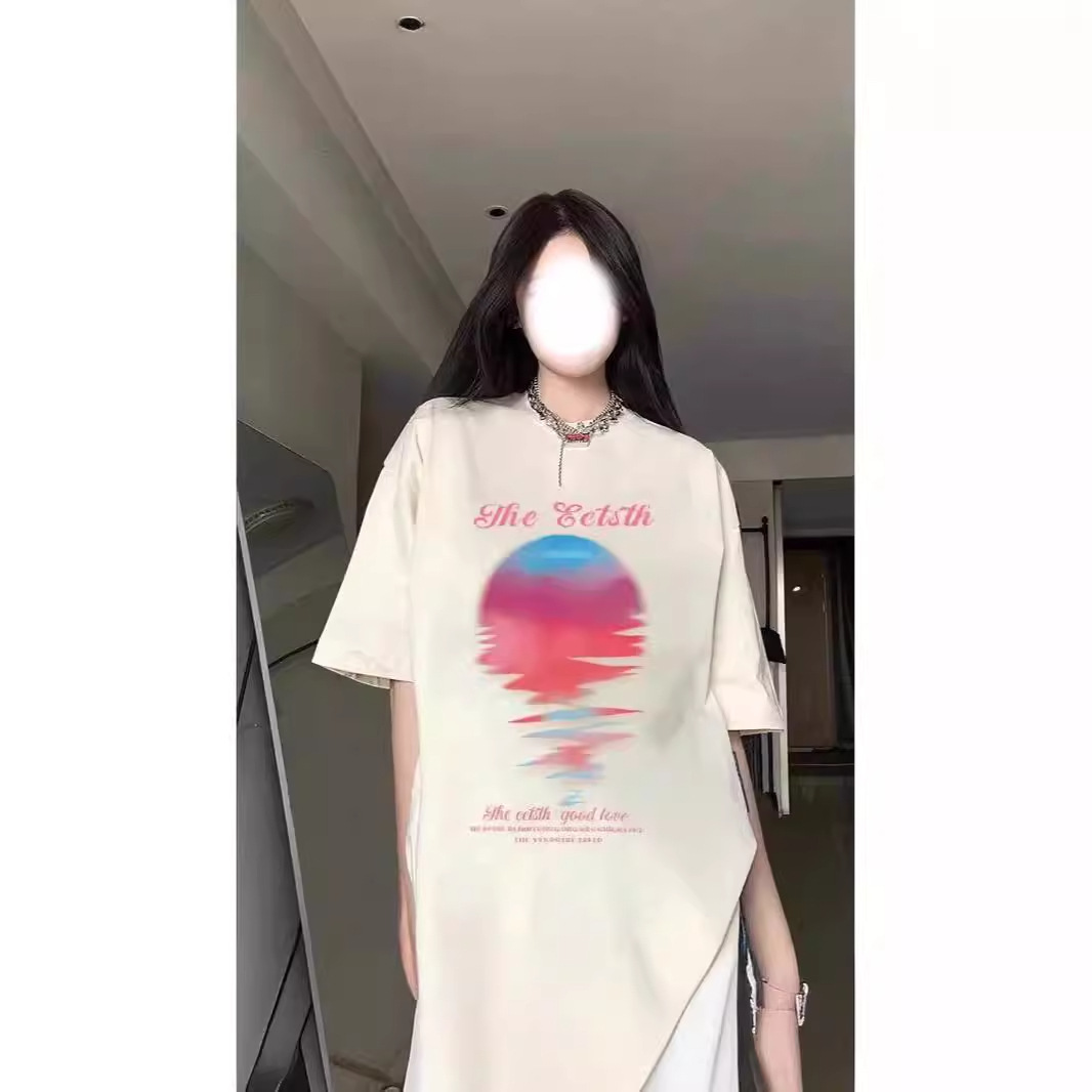 批发纯棉40支奥代尔短袖t恤女夏纯色正肩新款百搭爆款弧形下摆潮