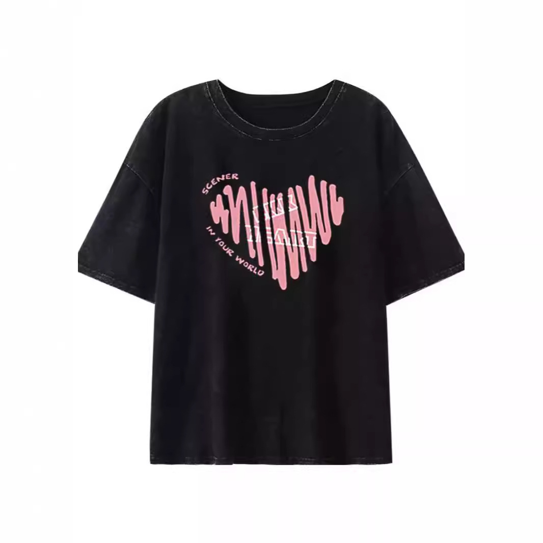 复古水洗做旧纯棉短袖t恤女夏季设计感情侣装体恤大码半袖上衣潮