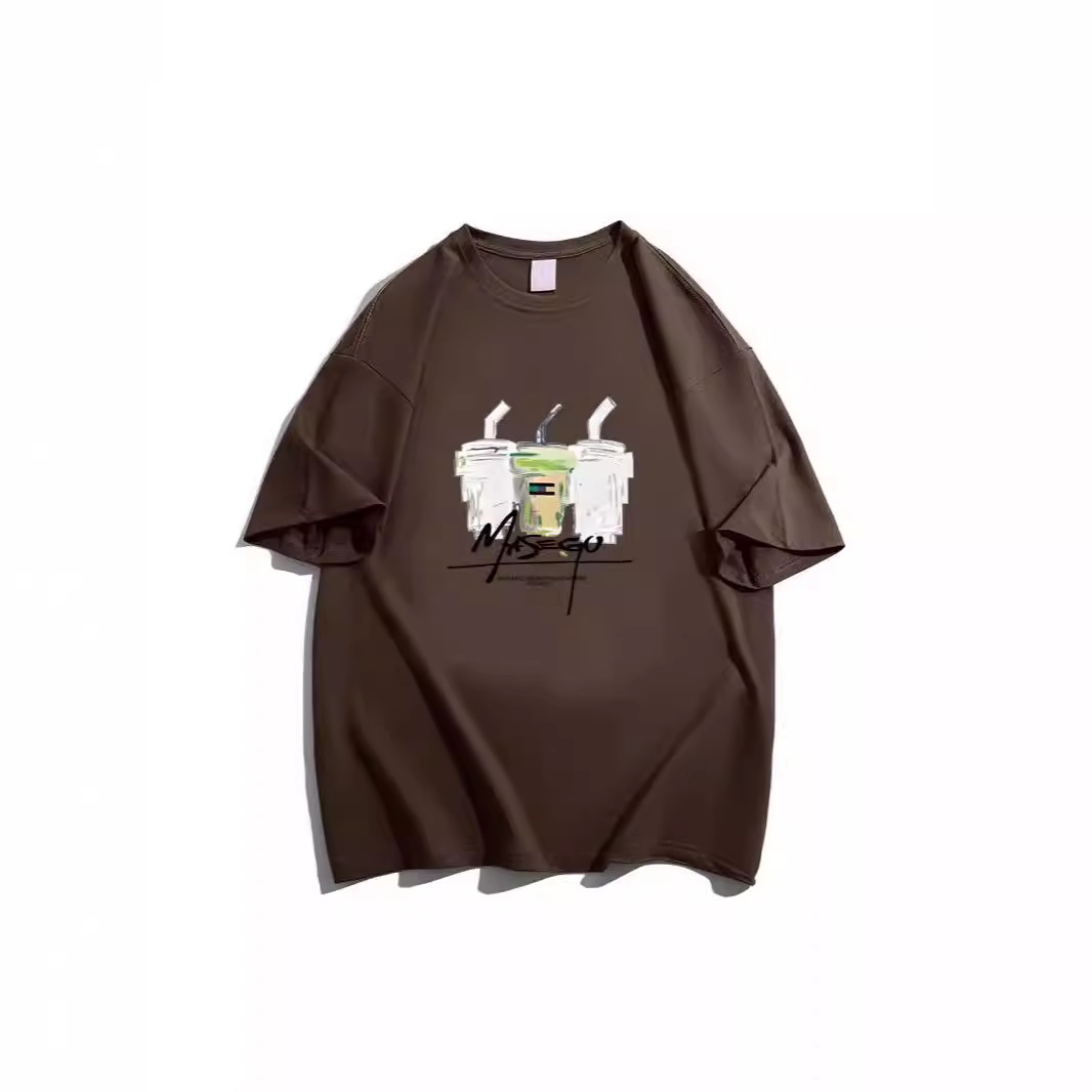 大码胖mm美式复古重磅纯棉短袖T恤男女夏季宽松百搭半袖体恤衫潮