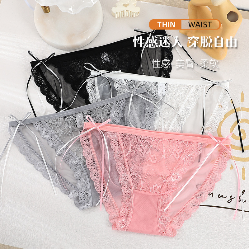 无痕低腰性感网纱女士三角裤轻薄透明蕾丝边棉裆舒适蝴蝶结内裤女