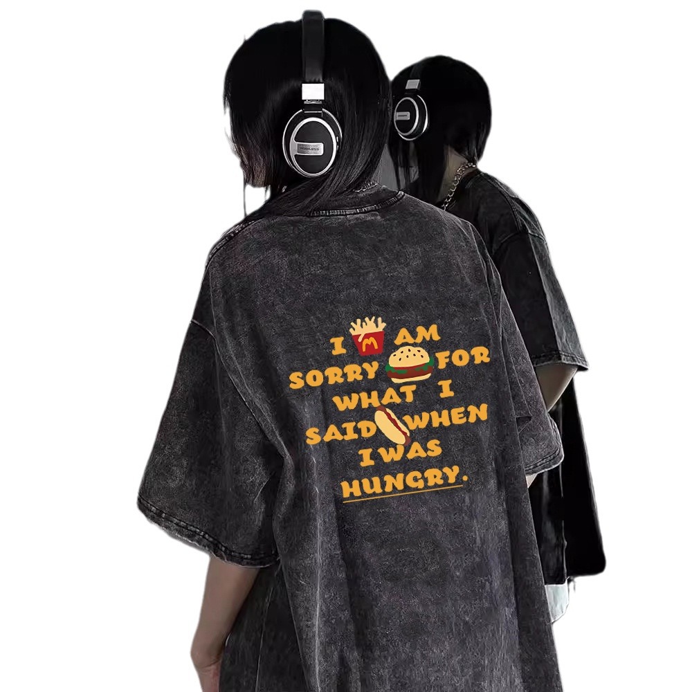 纯棉水洗做旧正肩宽松短袖t恤女男字母印花ins潮趣味休闲半袖上衣