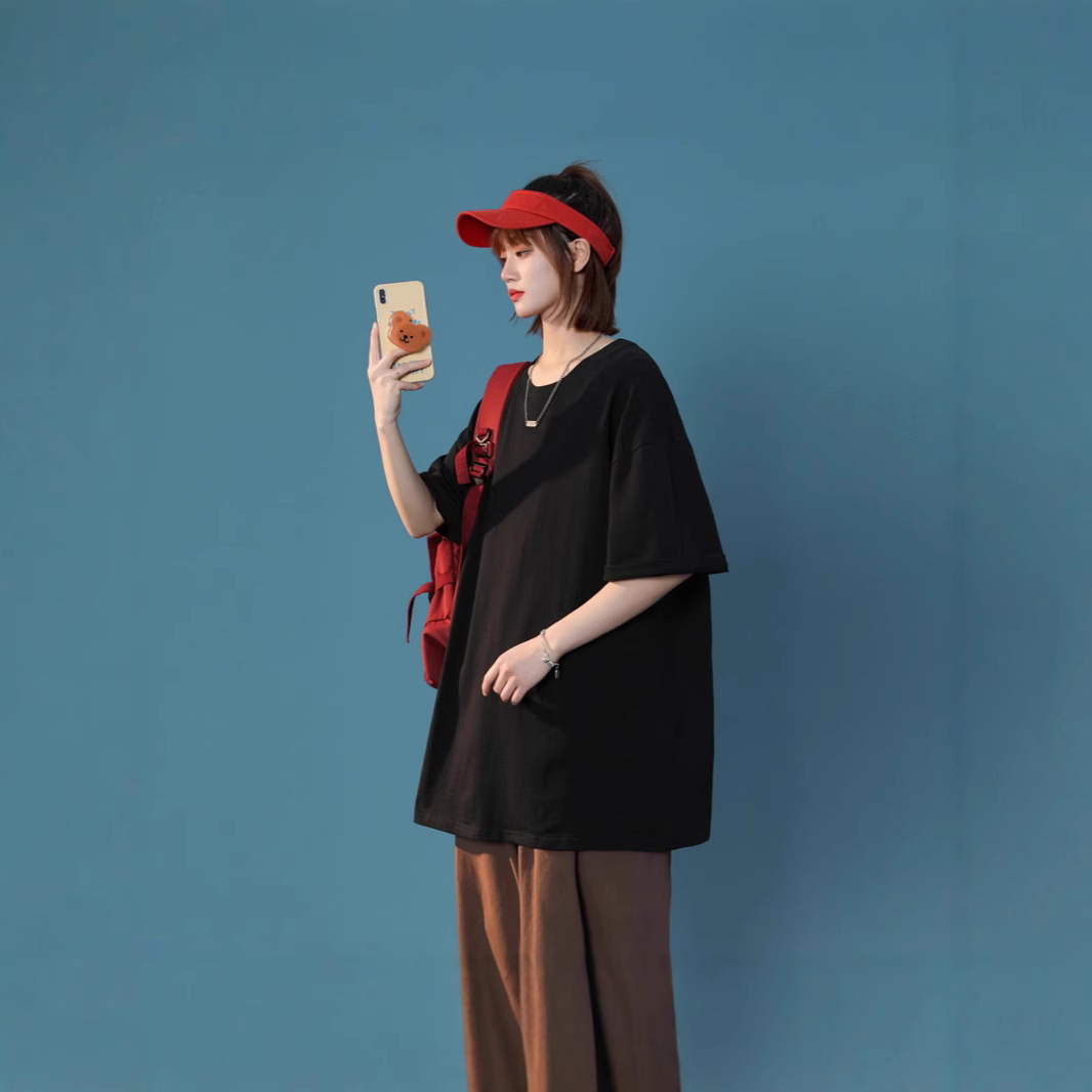 白色纯棉短袖t恤女新款夏季宽松大码半袖打底衫内搭正肩长袖上衣
