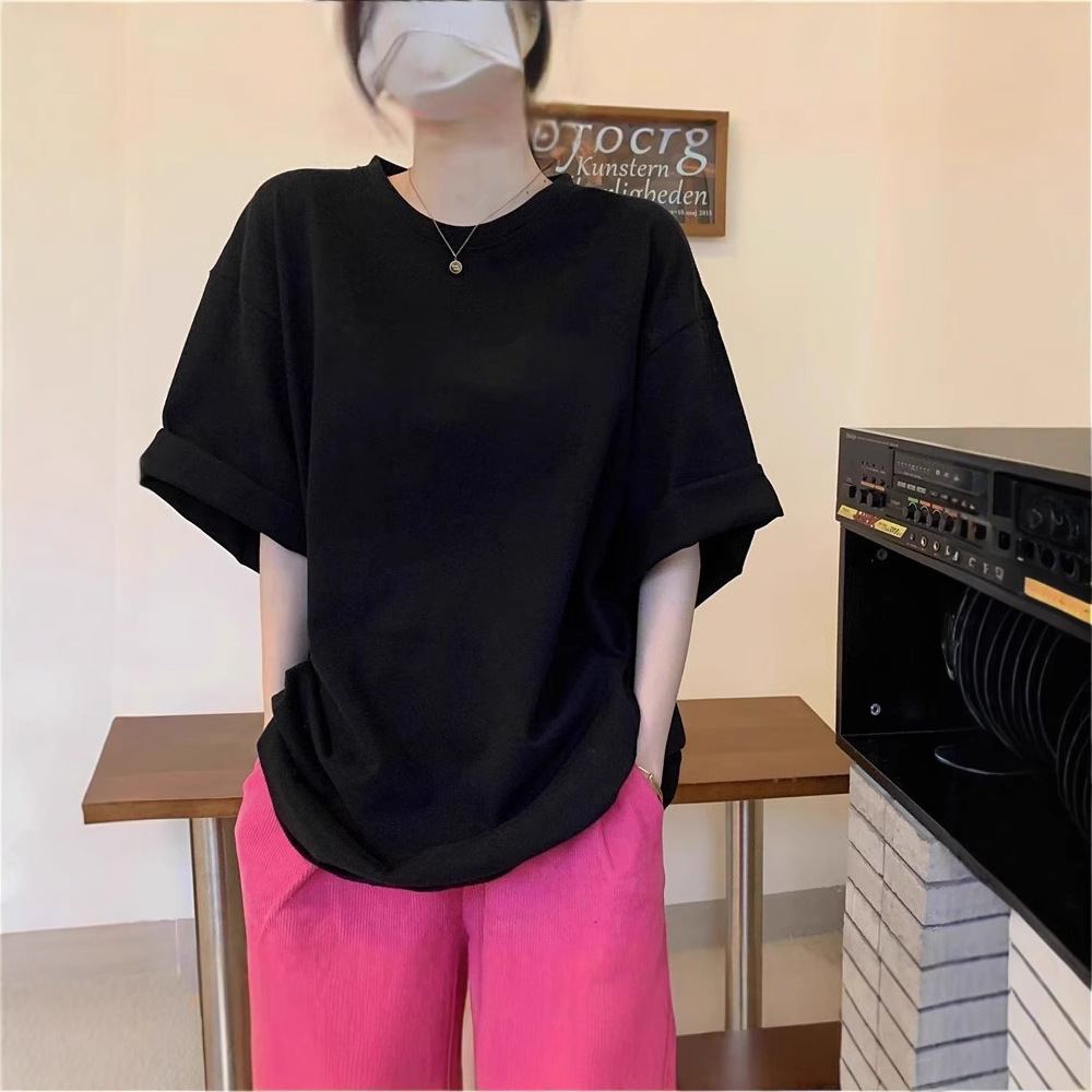 纯棉纯色宽松大码学生百搭基础显瘦打底衫多色T恤休闲男女短袖潮