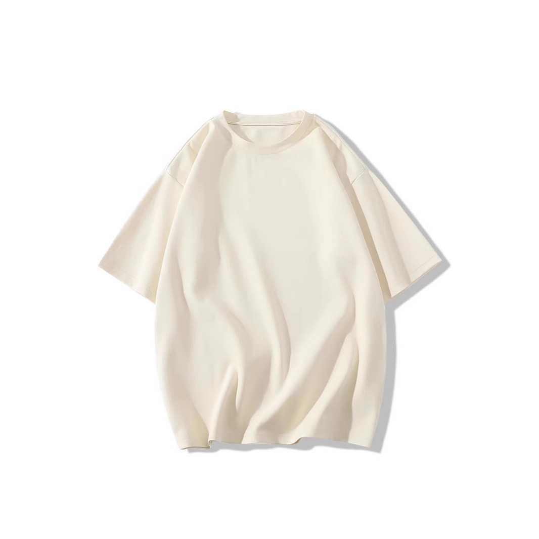 夏季情侣套头圆领短袖T恤男士兔子休闲宽松重磅落肩白色港风打底t