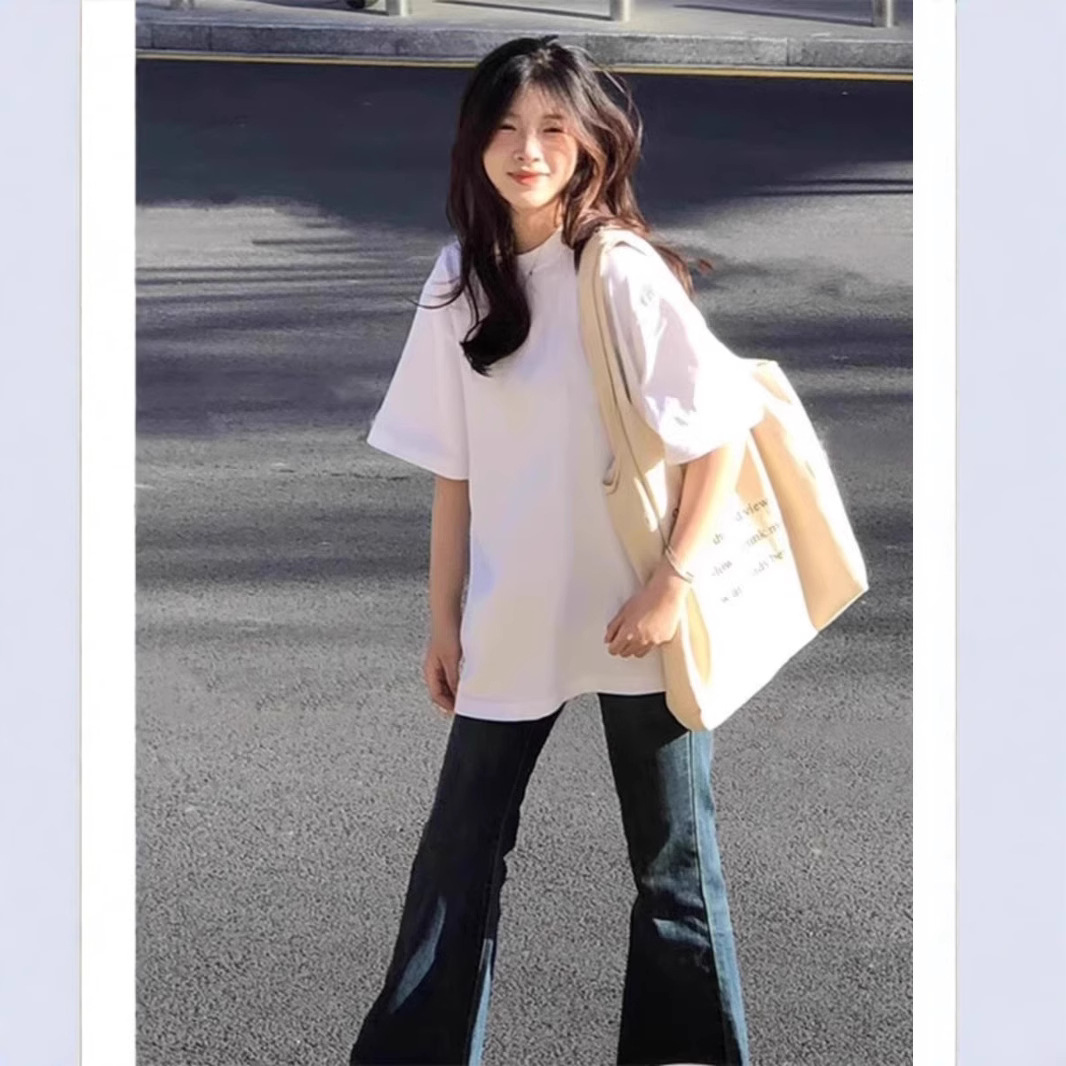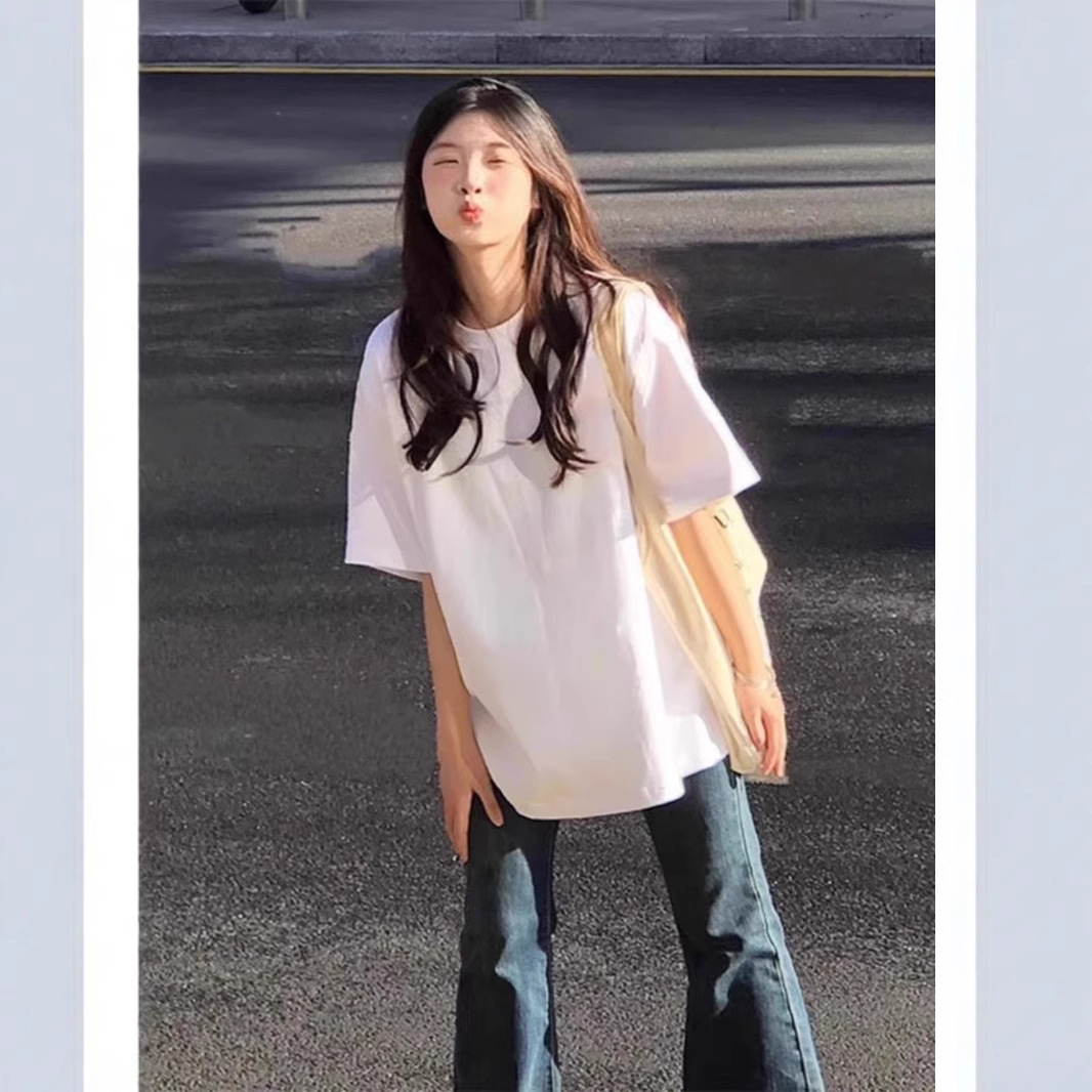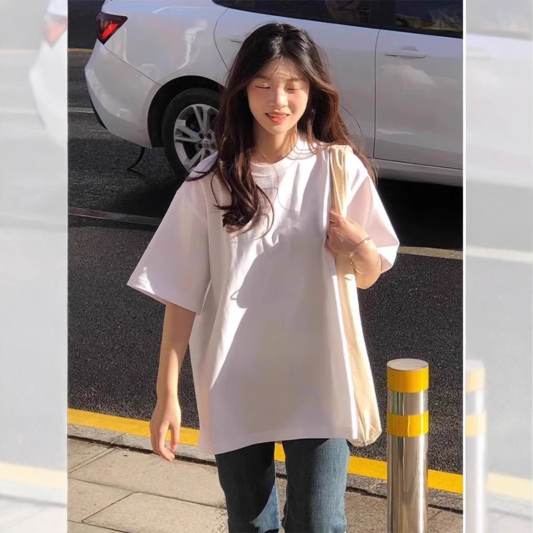 盐系夏季新款休闲简约白色短袖t恤男女宽松大版oversize纯棉上衣