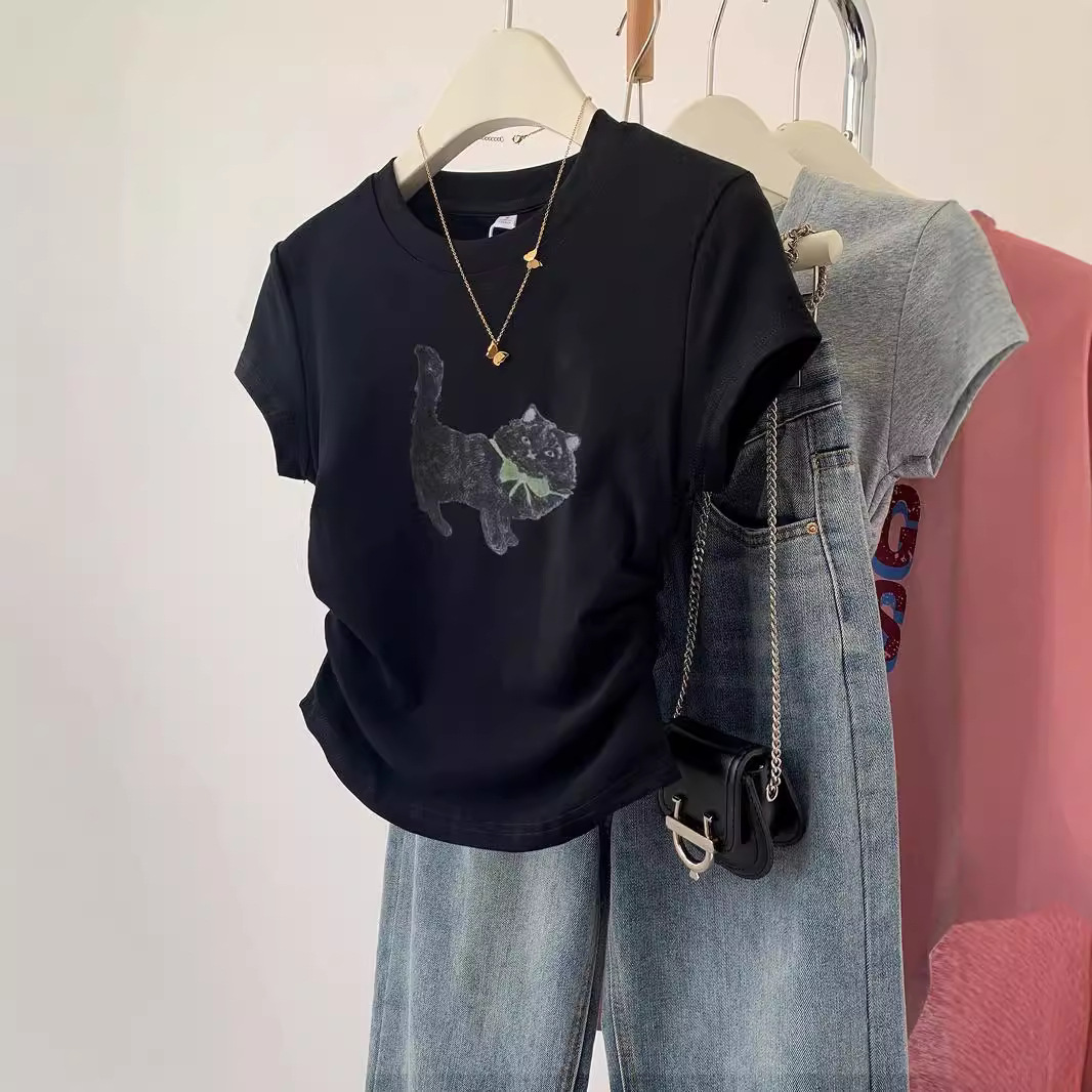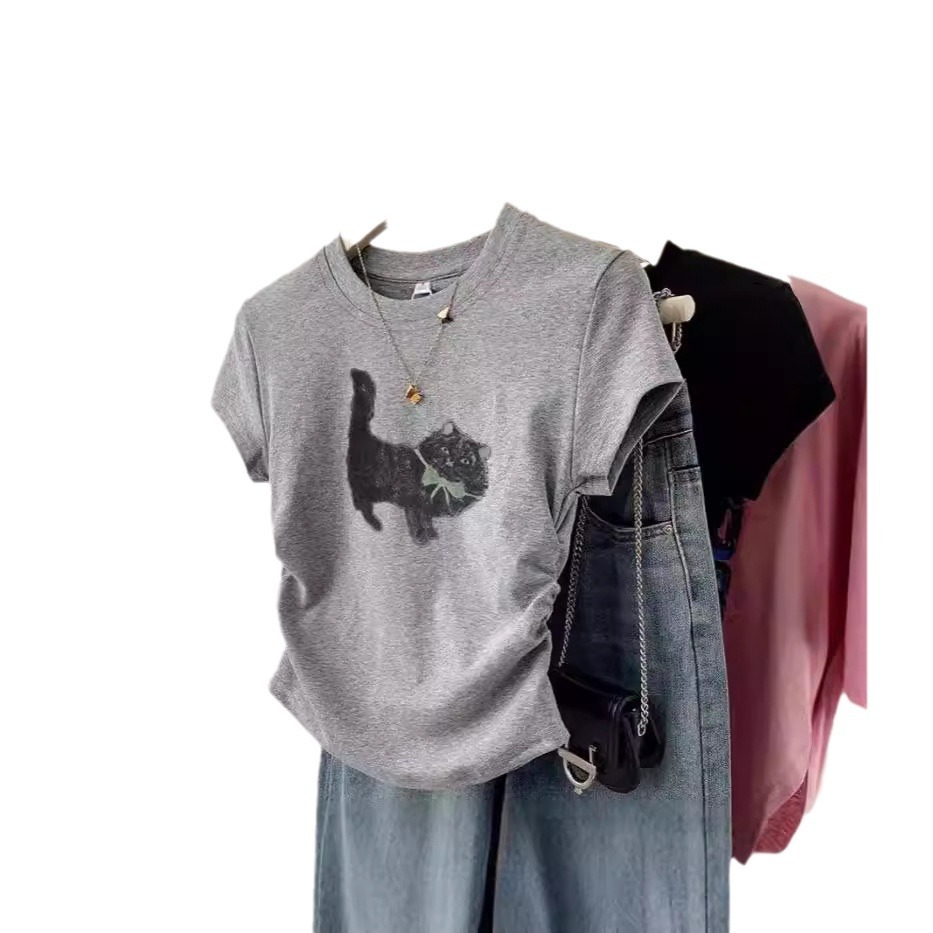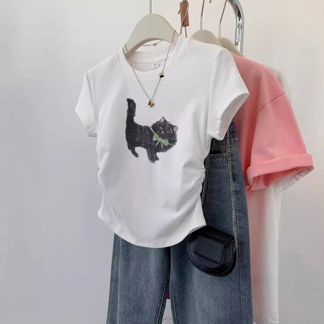 美式重磅纯棉正肩短袖t恤女夏季新款小个子修身显瘦短款体恤上衣