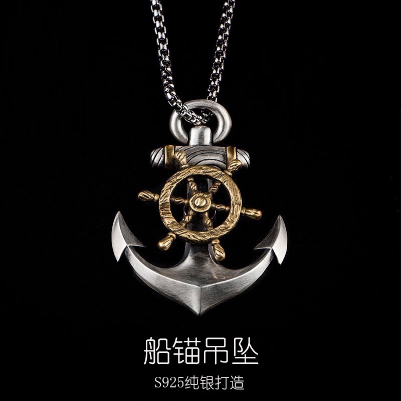925纯银船锚项链男潮欧美街头个性罗盘船舵吊坠个性百搭旋转