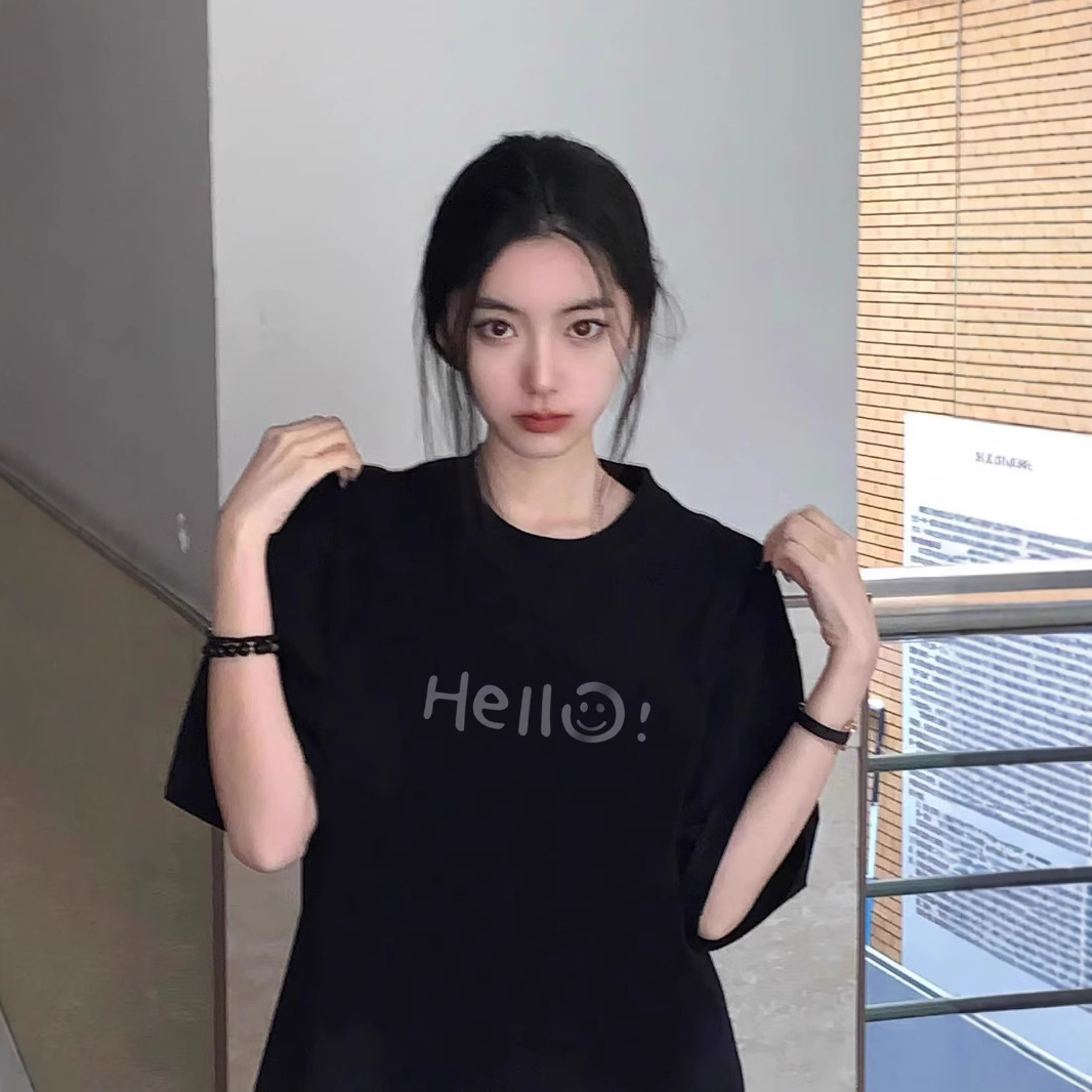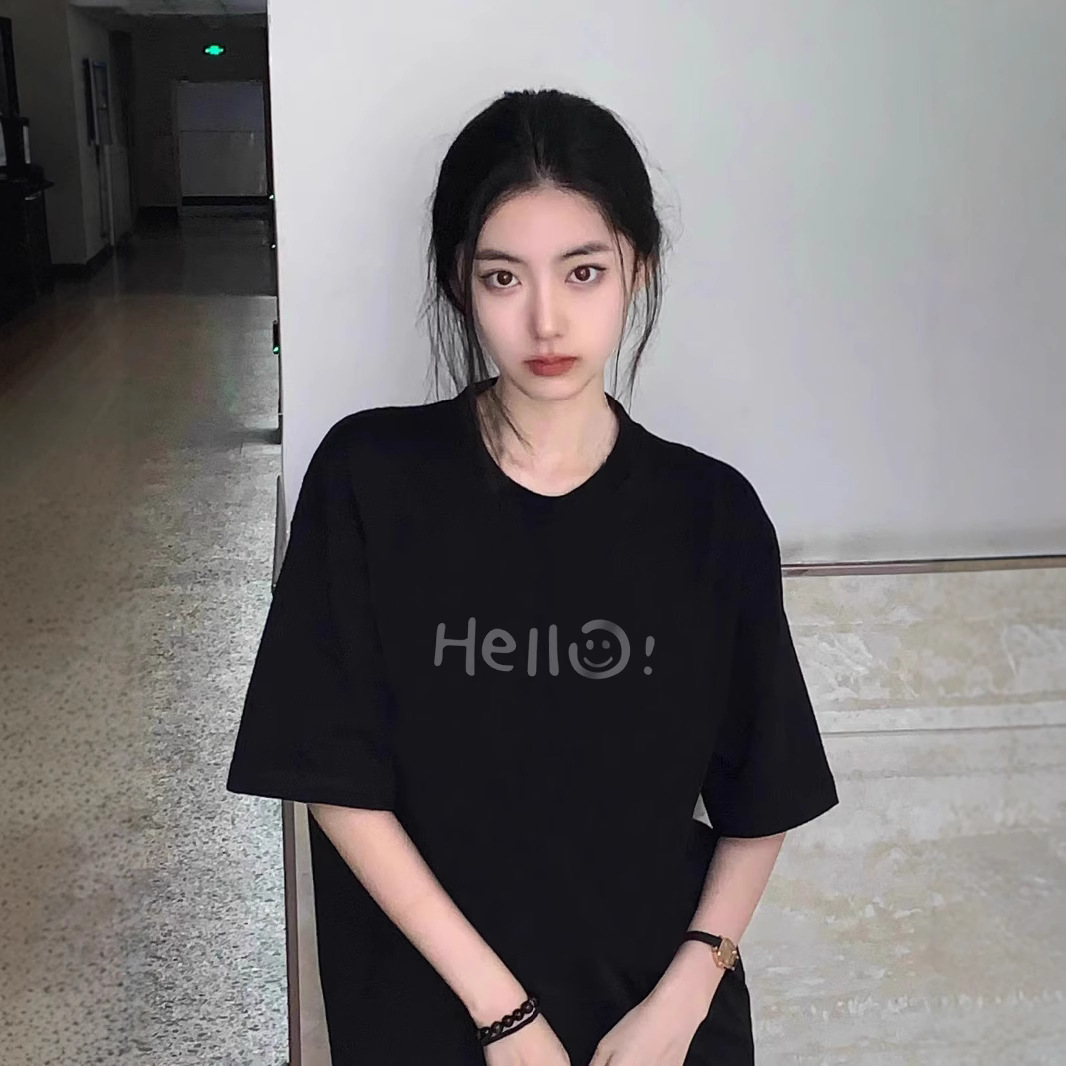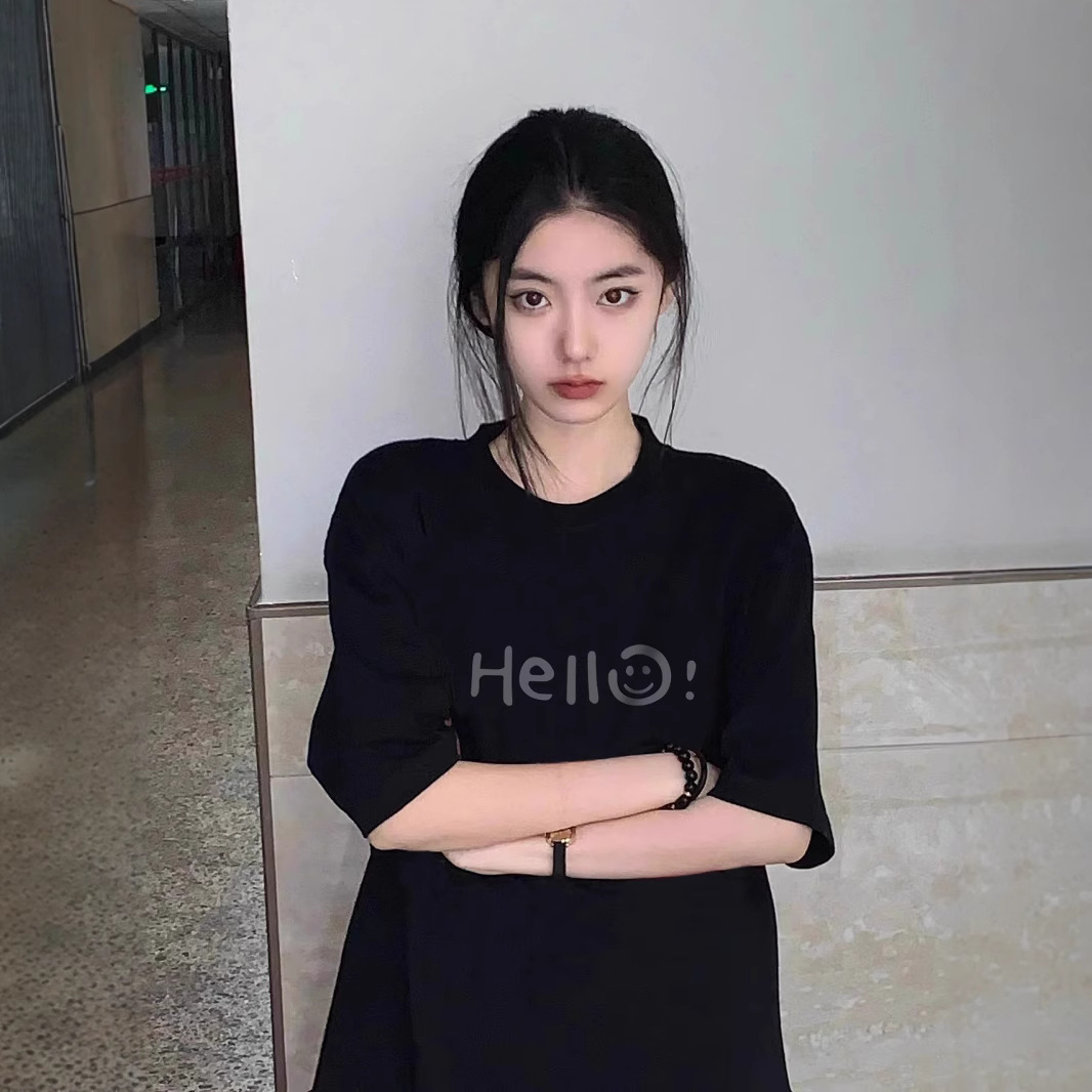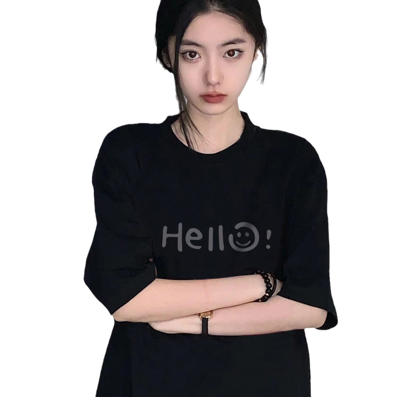 纯棉黑色短袖t恤女新款学生大码宽松休闲百搭情侣装男女上衣