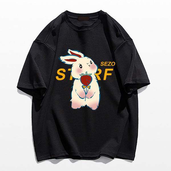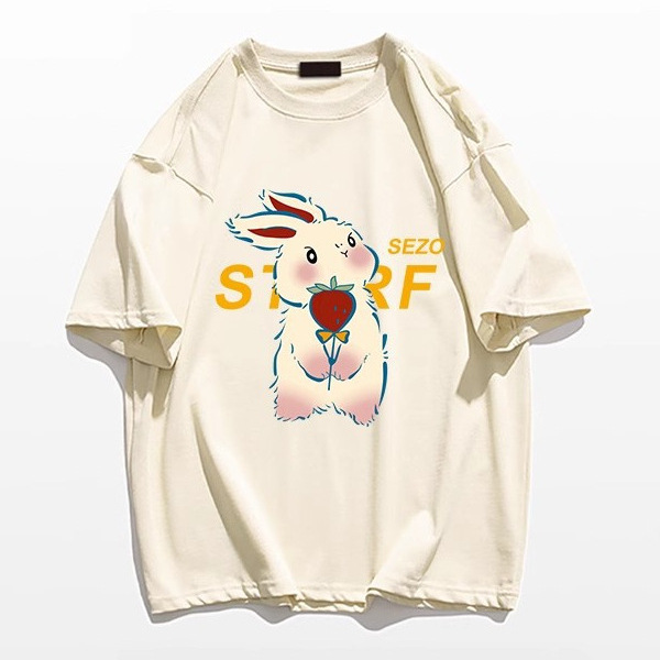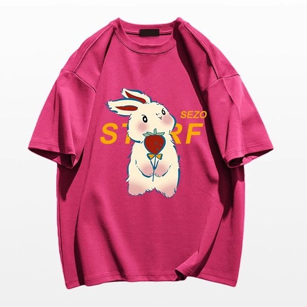 国潮小众短袖设计感纯棉T恤女火龙果色宽松大码半袖夏季上衣服潮