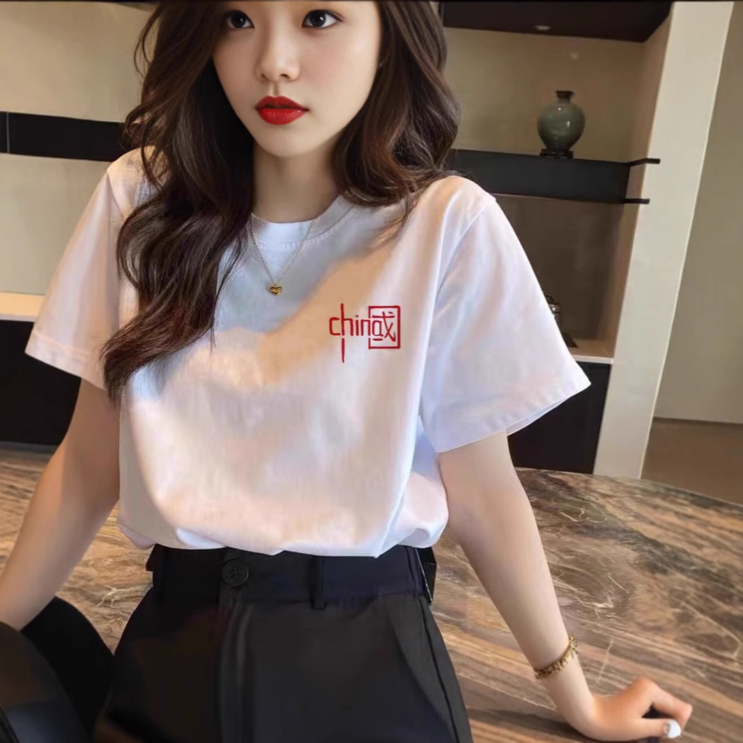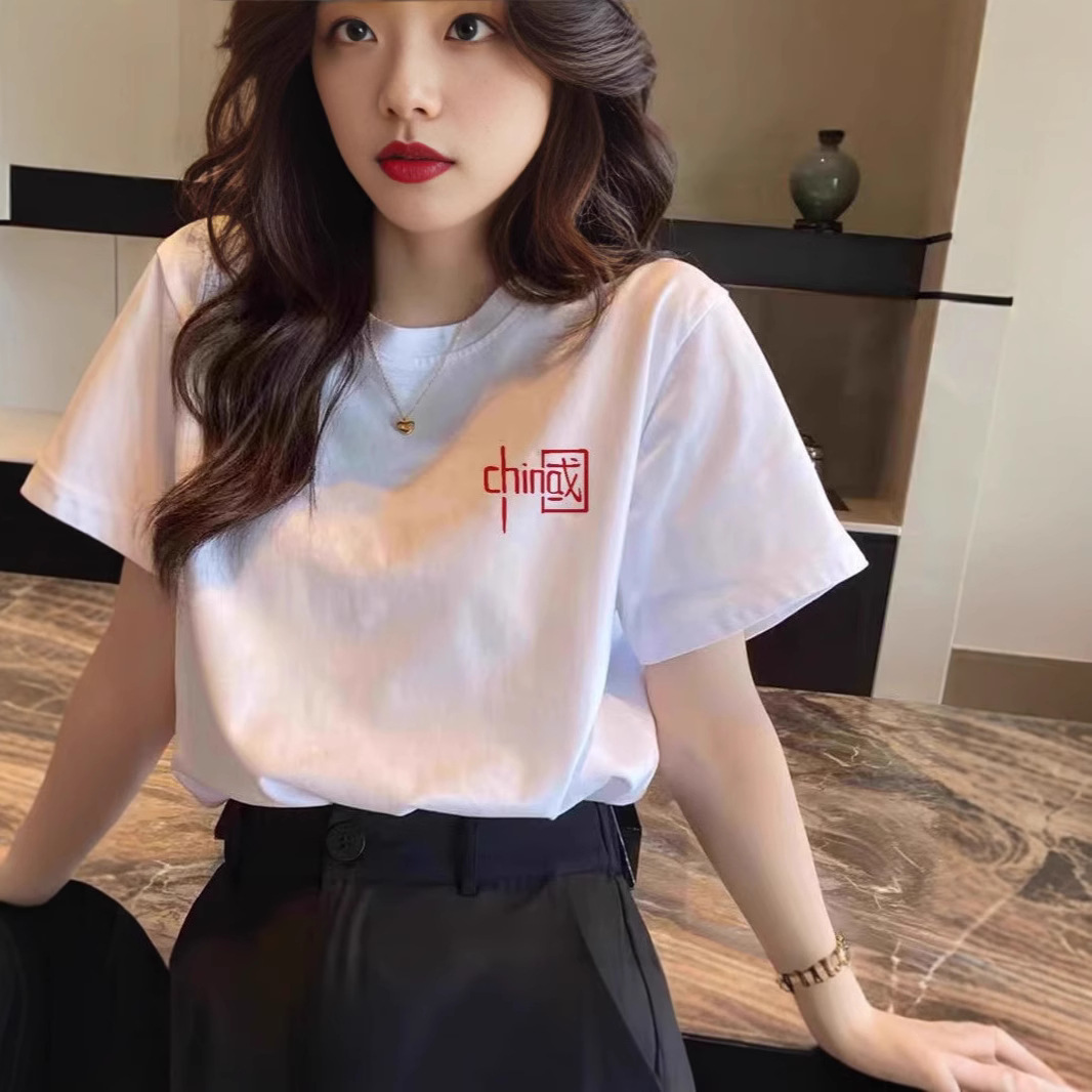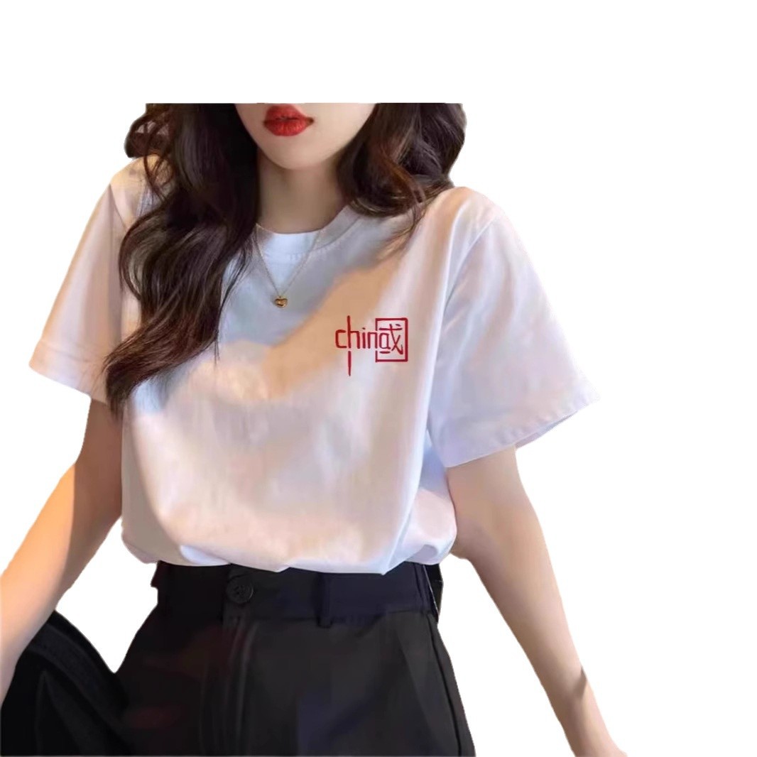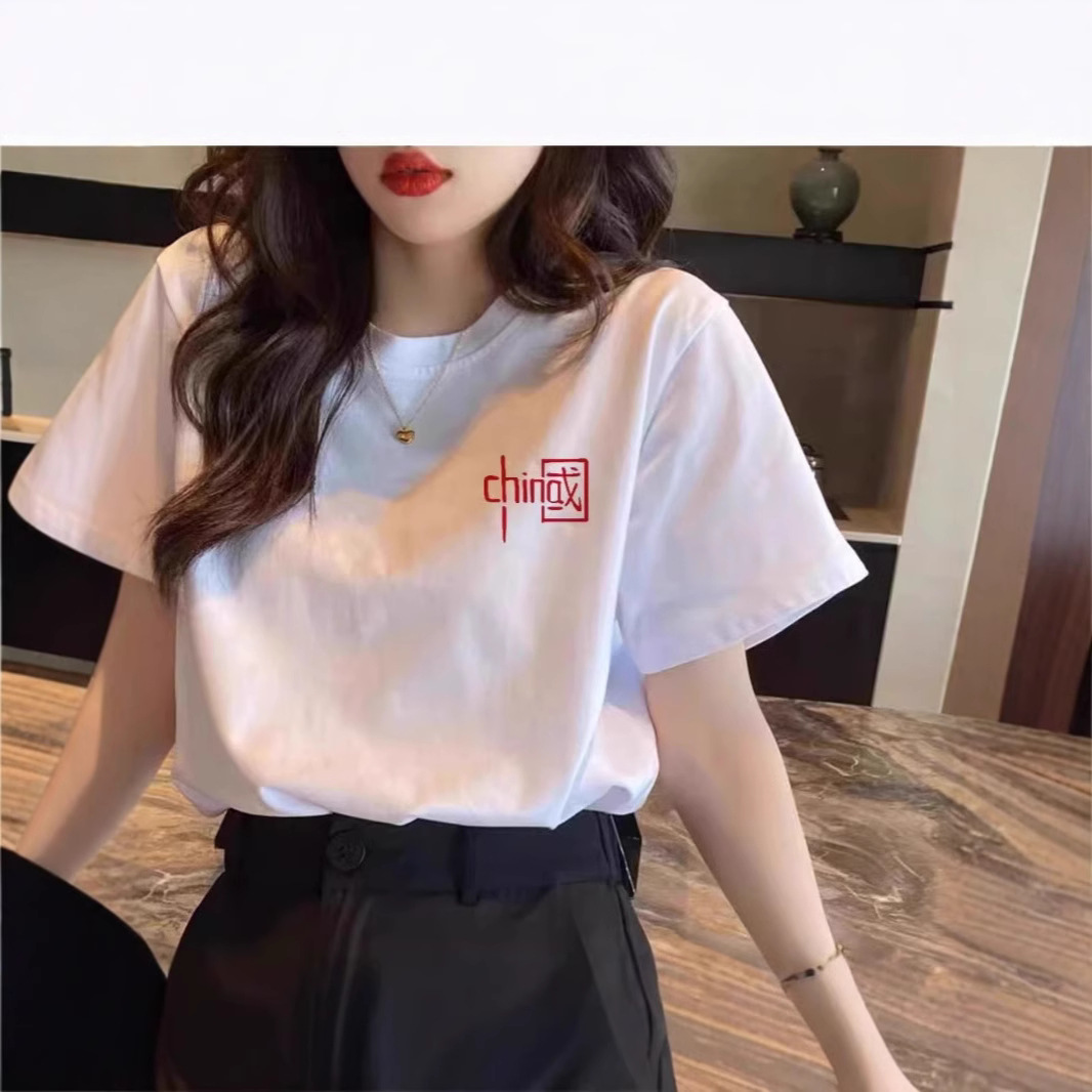 国潮中国字样短袖t恤男女同款爱国纯棉宽松大码班服演出服上衣夏