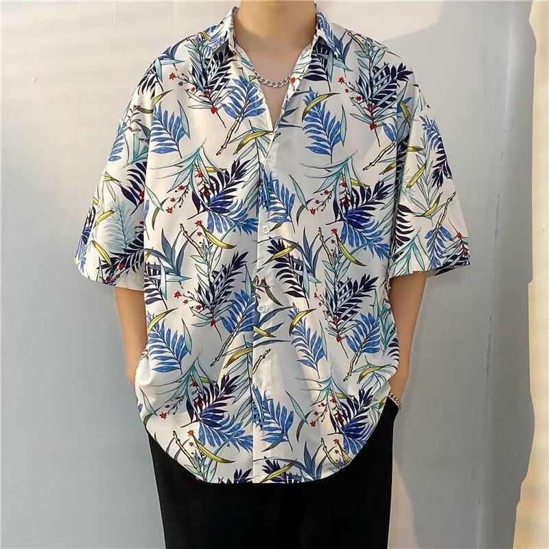 夏威夷碎花短袖衬衫男生夏季新宽松休闲沙滩度假风情侣装半袖上衣