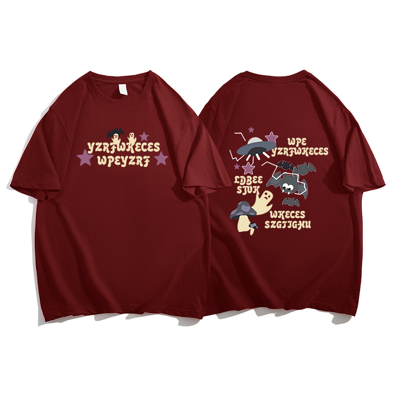 宽松正肩短袖上衣服女生夏季小众酒红色甜酷风chic印花纯棉t恤衫