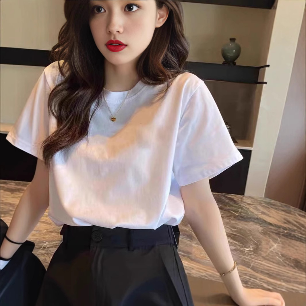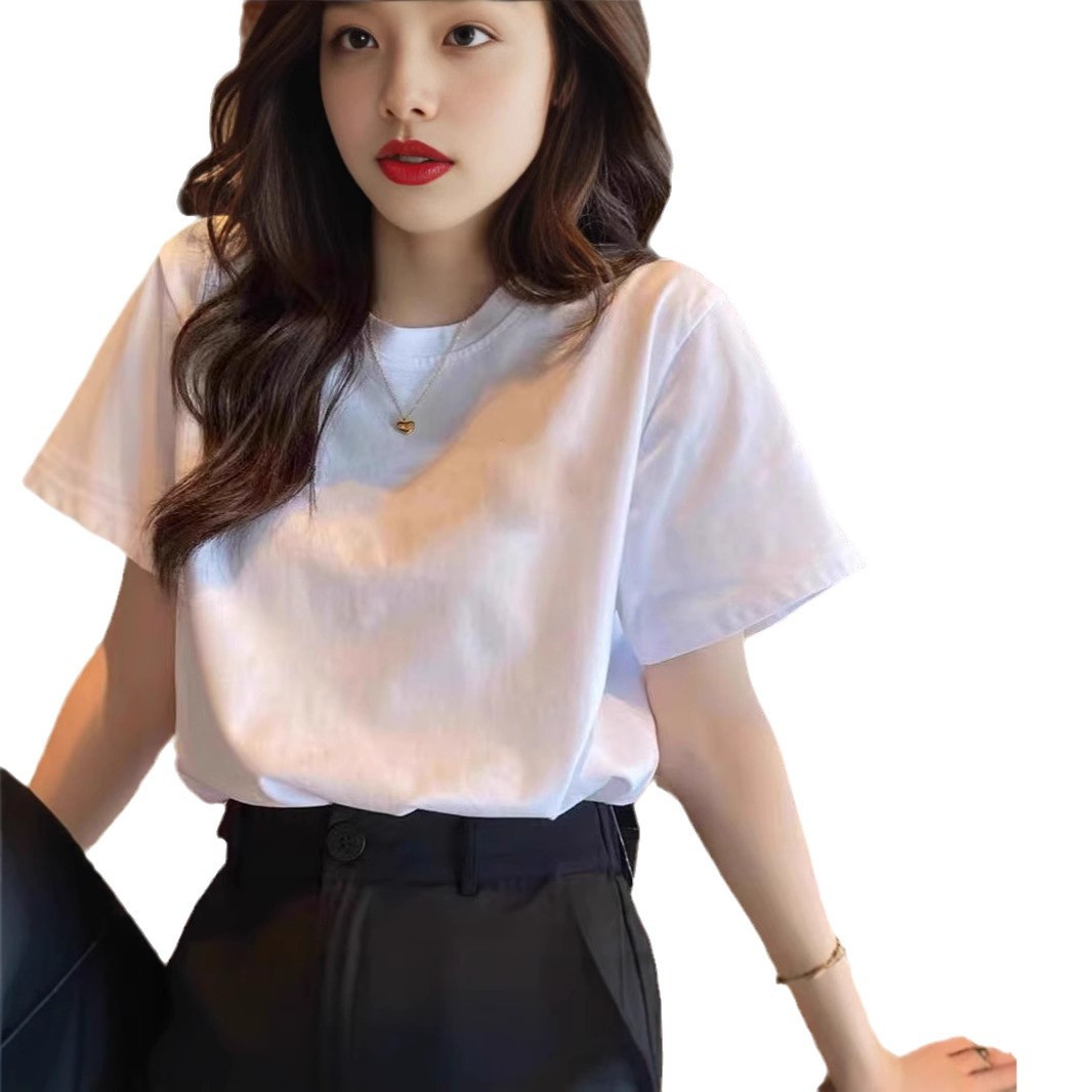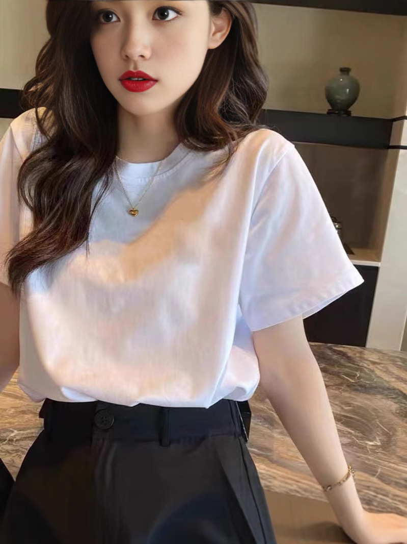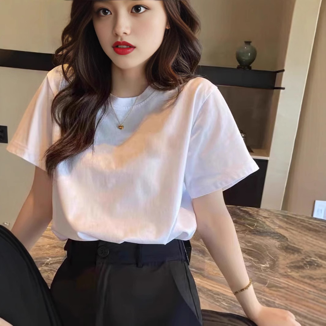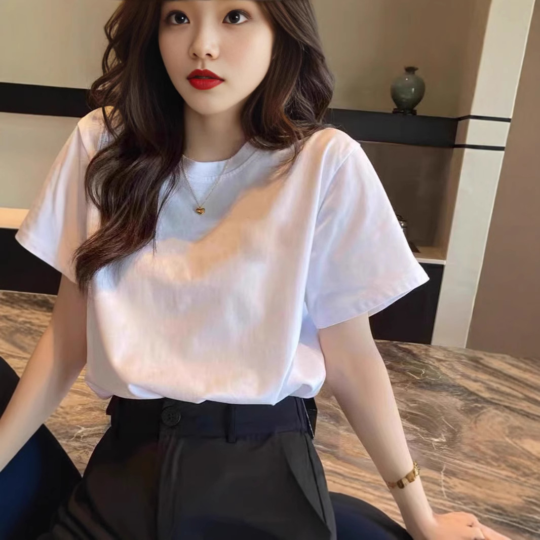 重磅纯棉白色短袖上衣女胖mm遮肚子圆领T恤春夏内搭打底衫潮