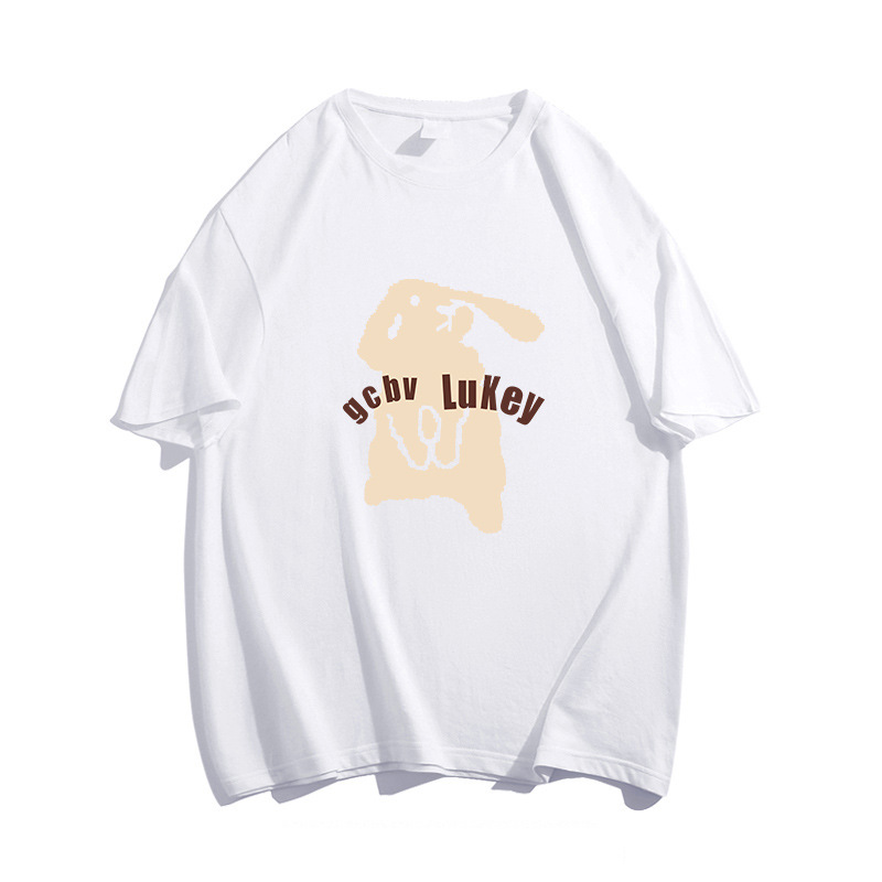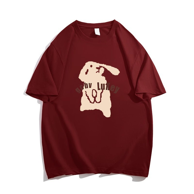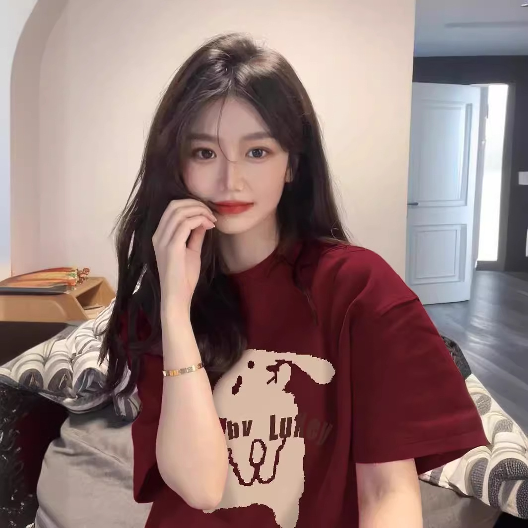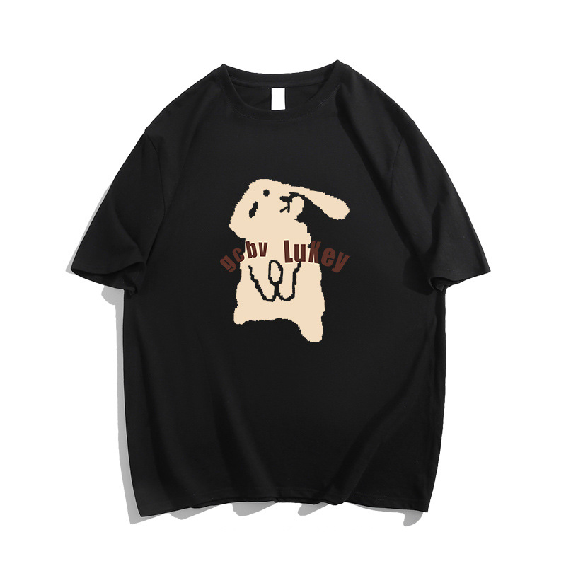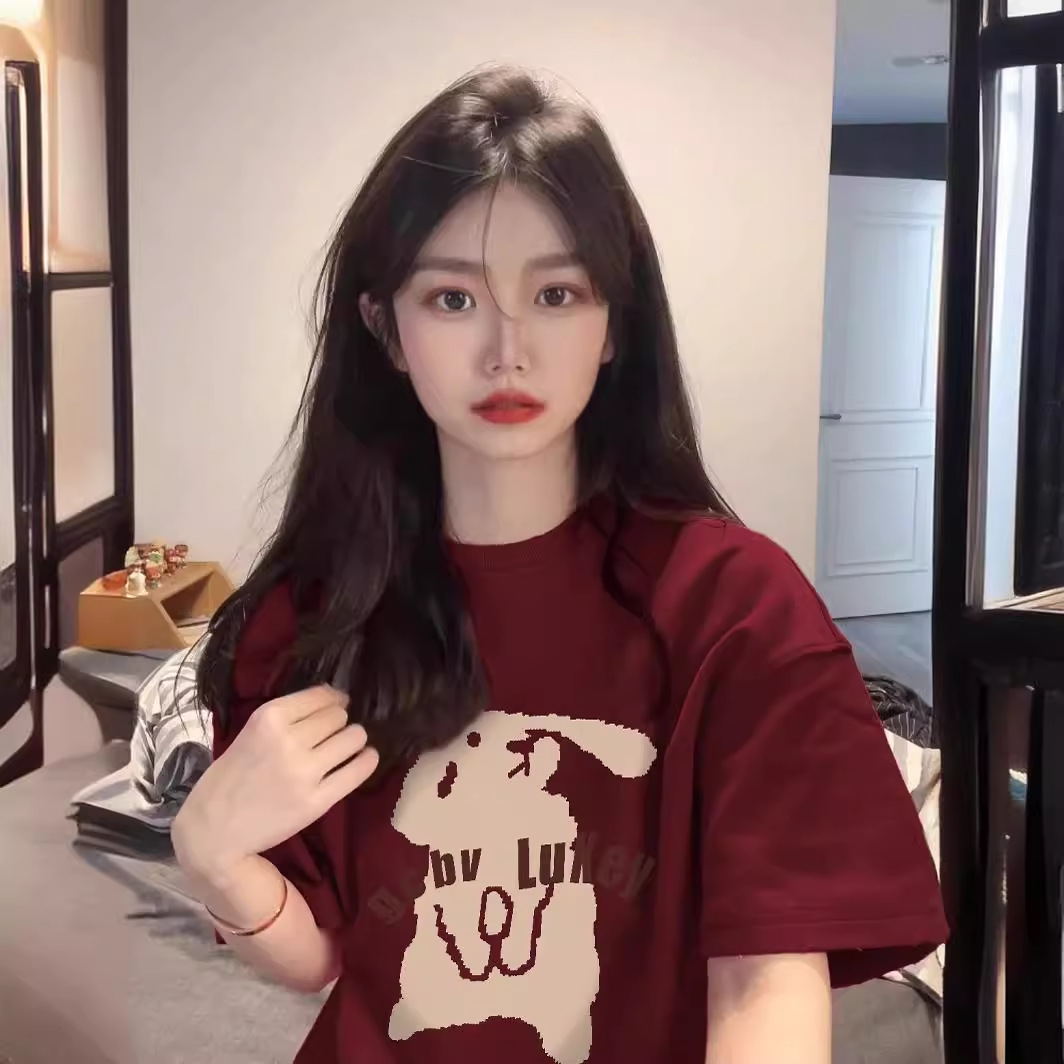 重磅纯棉兔子印花短袖t恤女夏季年新款宽松美式复古半袖上衣