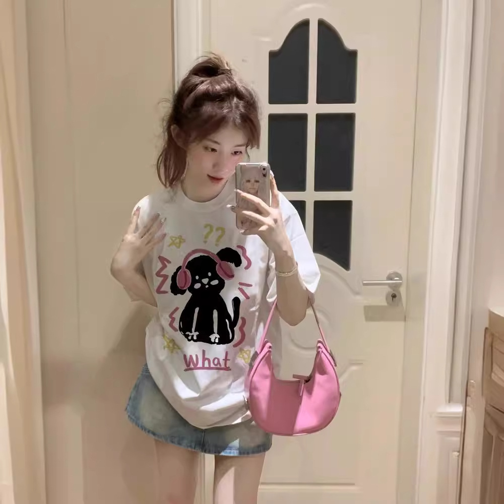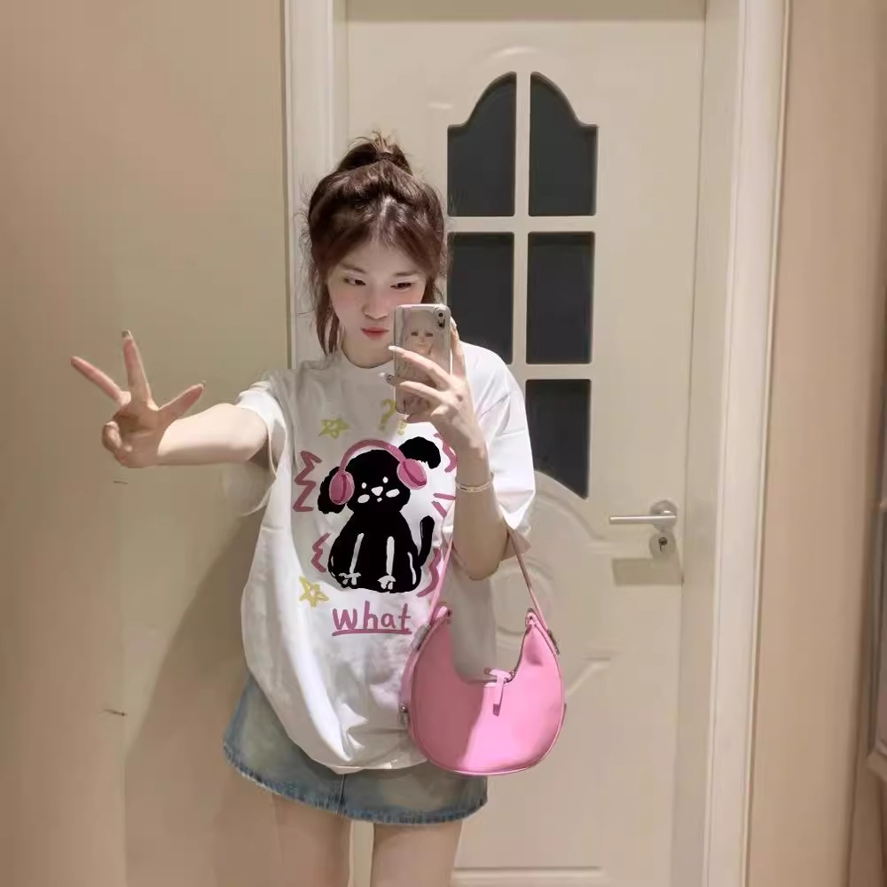 大码纯棉正肩短袖t恤女夏季设计感小众半袖小个子洋气减龄上衣潮