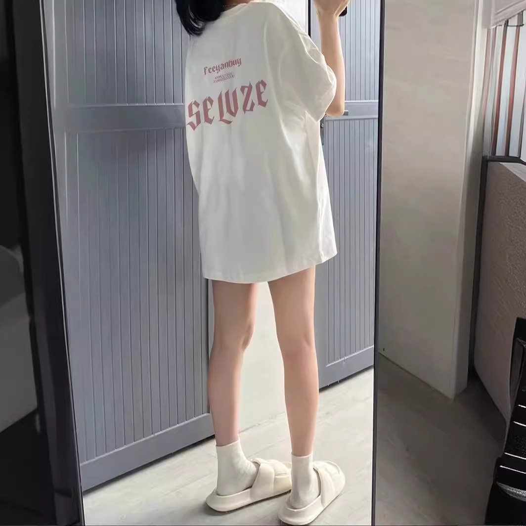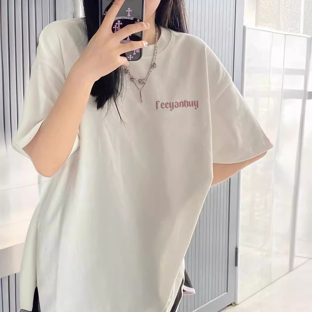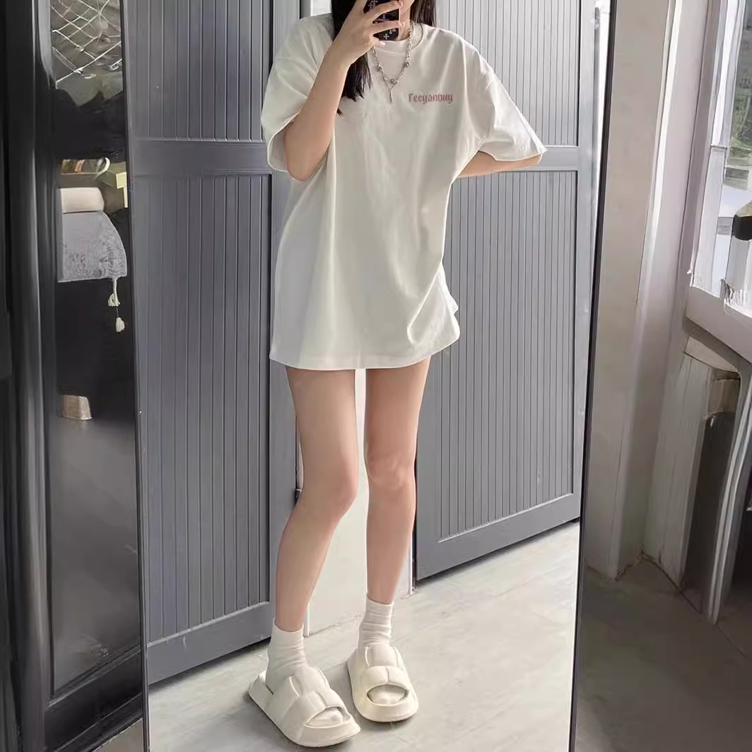 纯棉白色短袖t恤女夏季小个子宽松半袖设计感小众上衣oversize潮