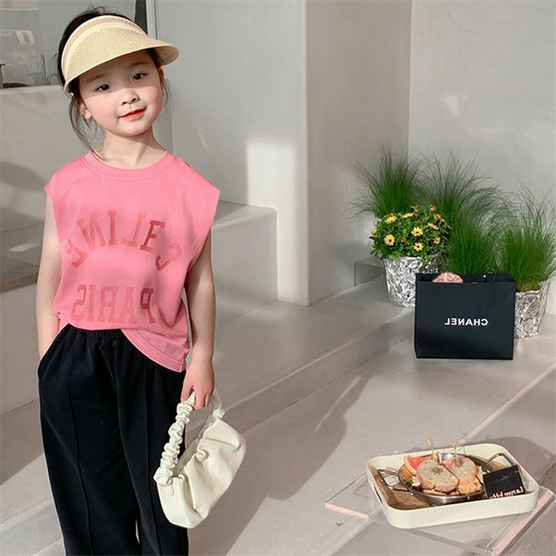 女童夏装背心上衣宝宝洋气儿童个性潮牌韩版网红字母印花无袖T恤