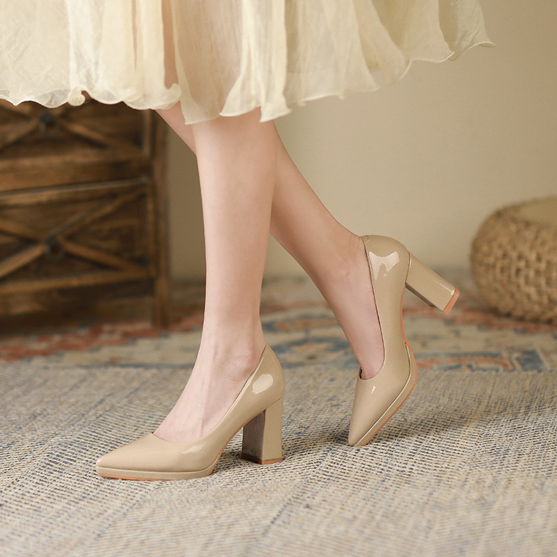 8099-1 尖头粗跟高跟鞋女秋季新款防水台单鞋女职业工作女鞋