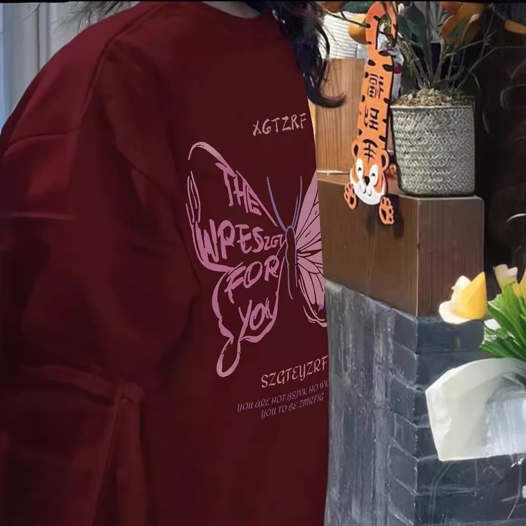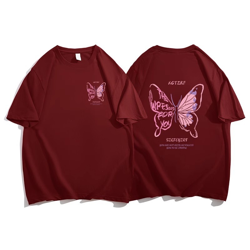 酒红色纯棉重磅短袖t恤女夏季美式复古设计感小众半袖宽松上衣潮