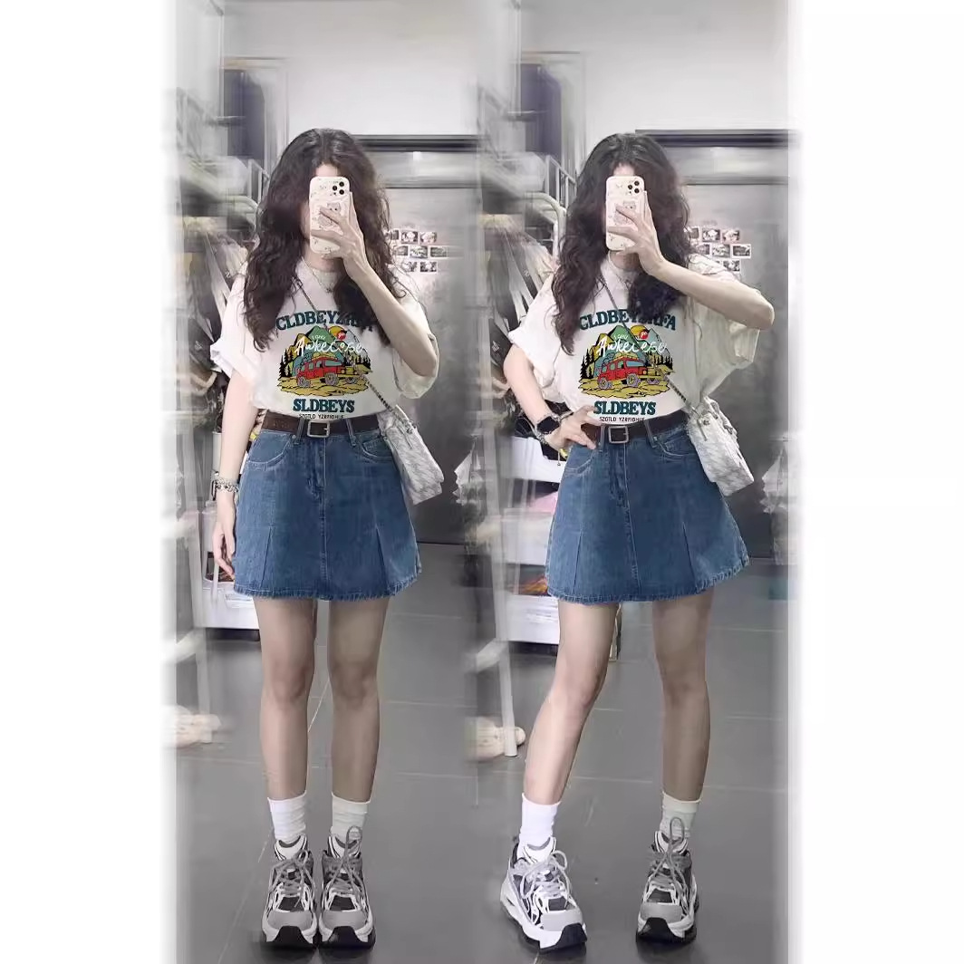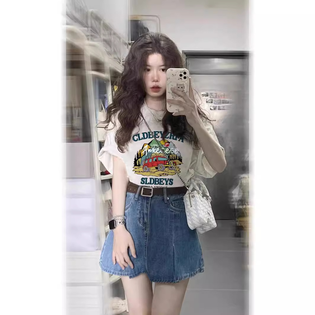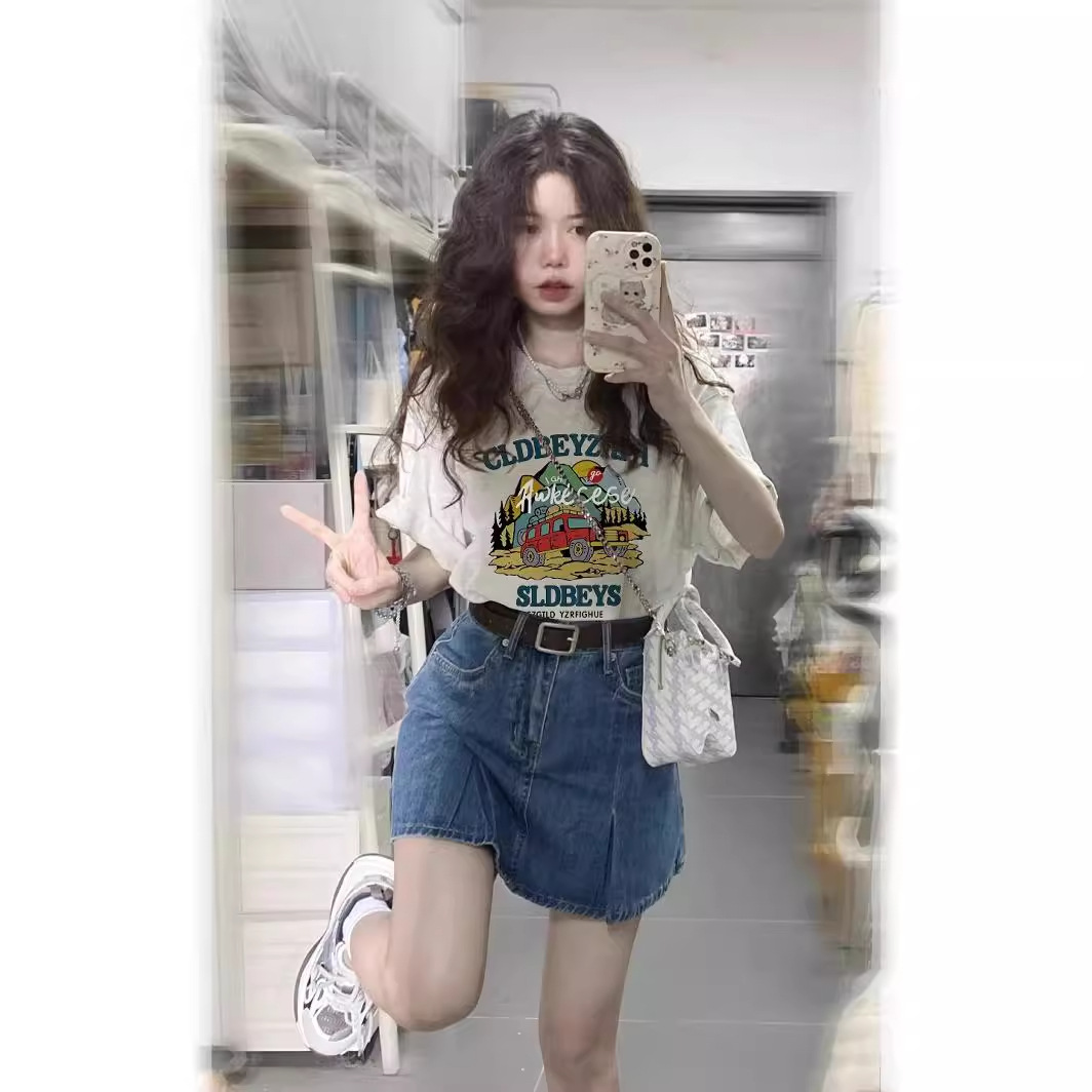 白灰色纯棉短袖t恤女小个子夏季美式复古港味chic宽松半袖上衣服