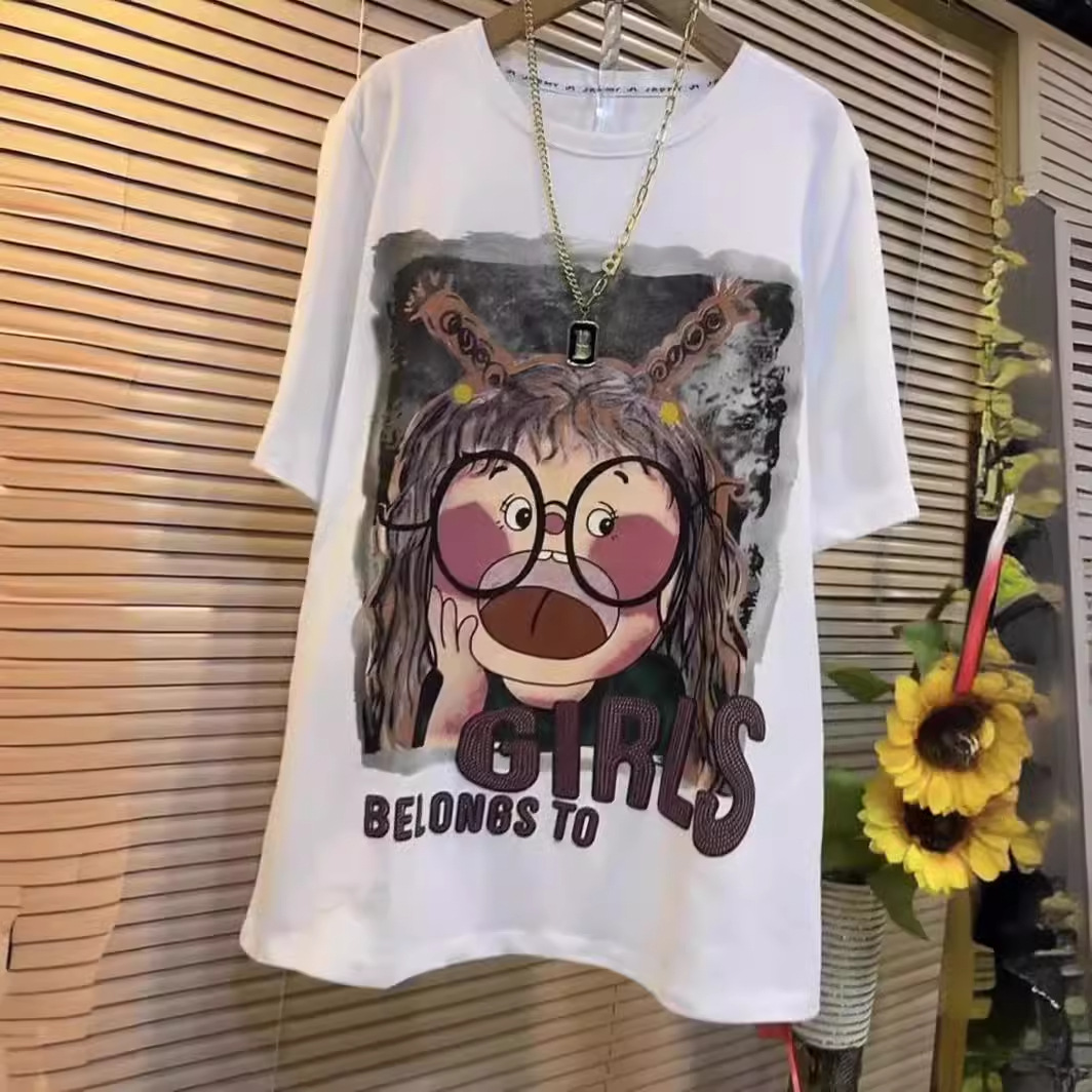 大码女装春夏宽松200斤纯棉短袖T恤女欧货胖mm遮肉上衣显瘦打底衫