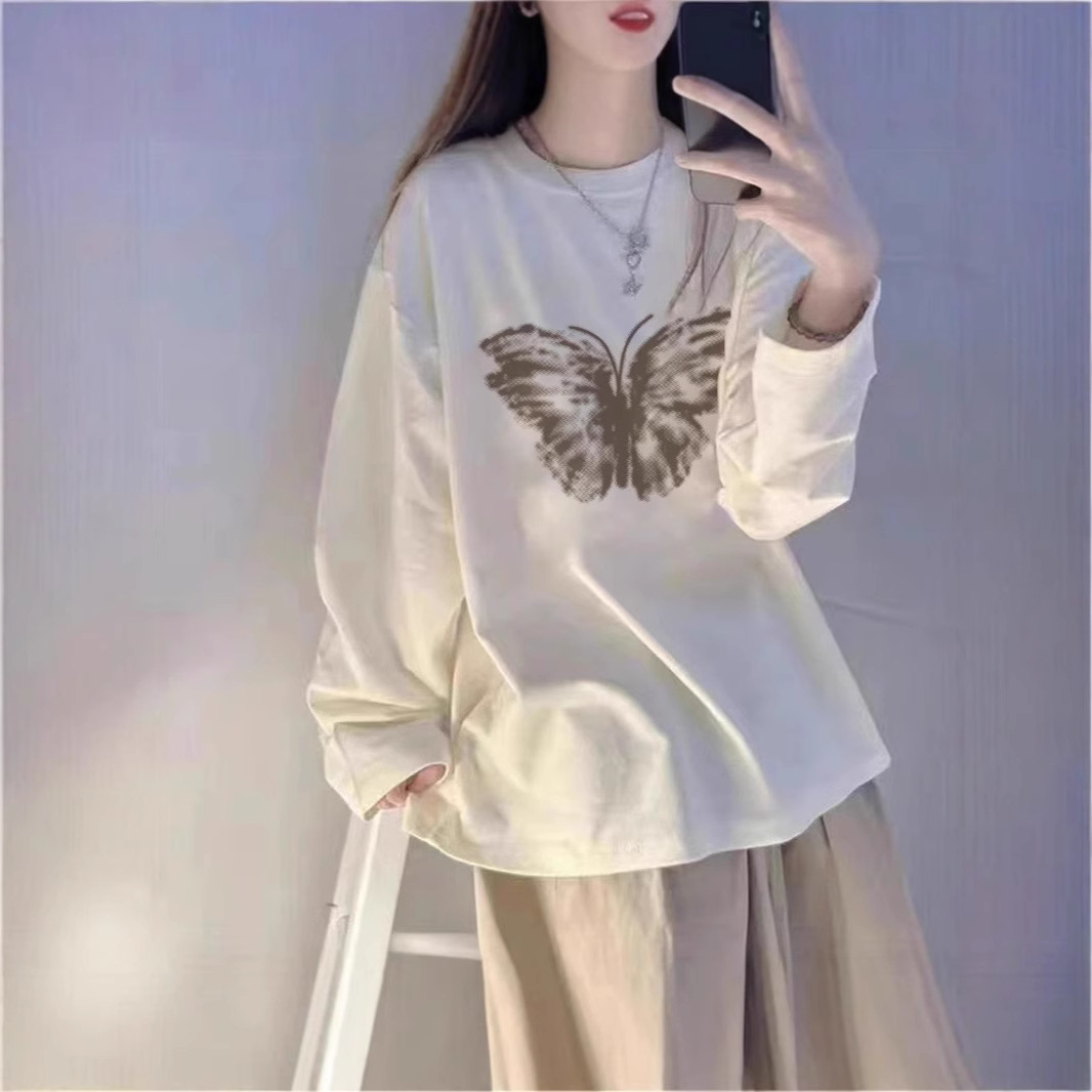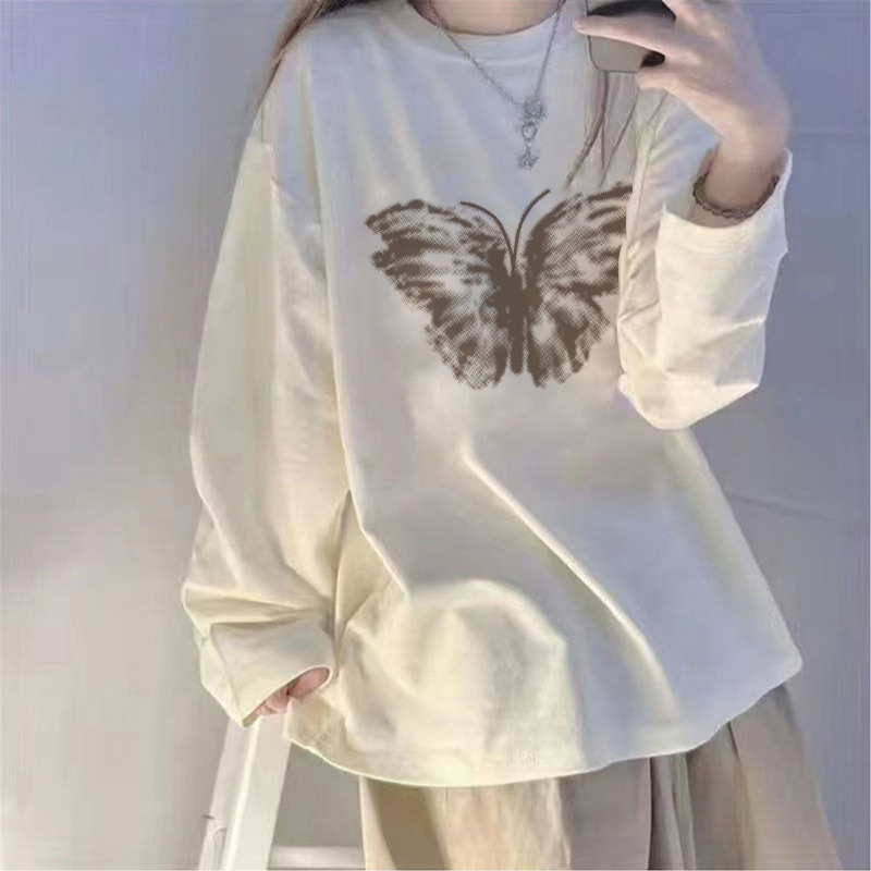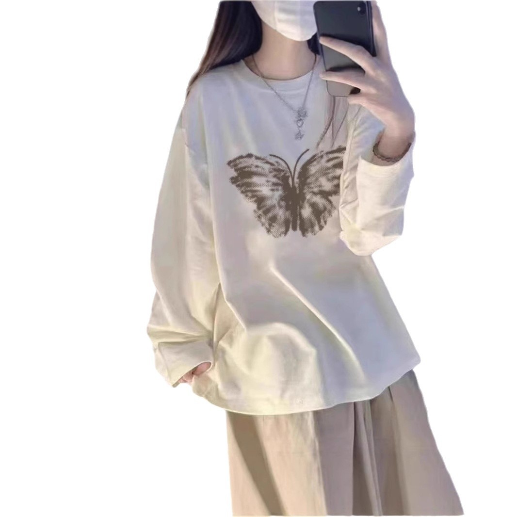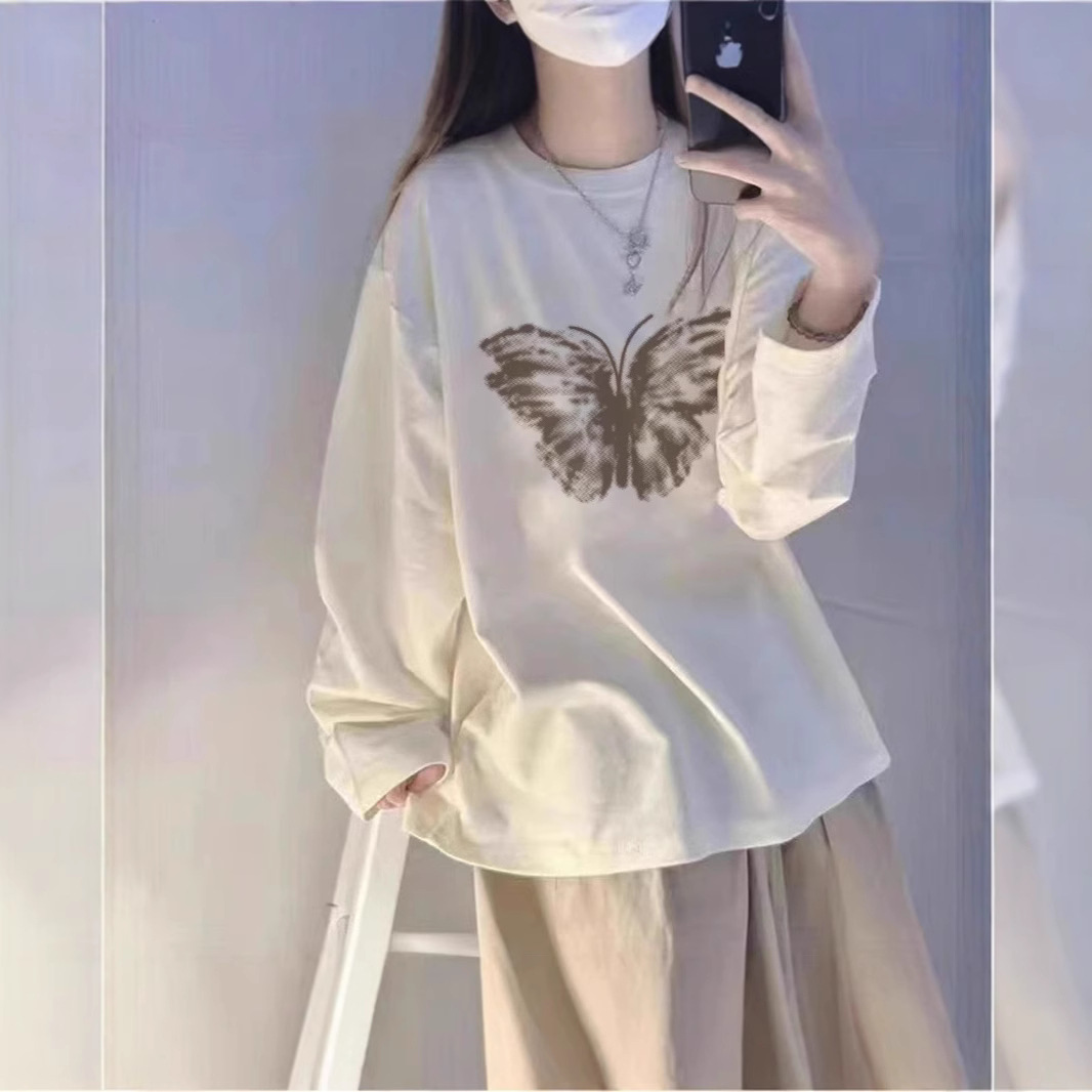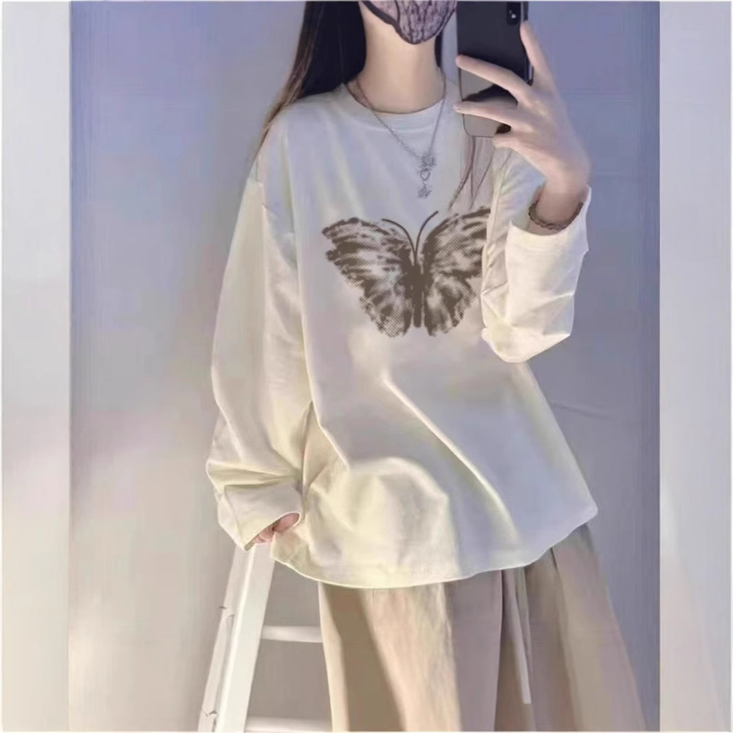 美式长袖t恤女秋冬新款内搭打底衫小个子宽松大码慵懒松弛感上衣
