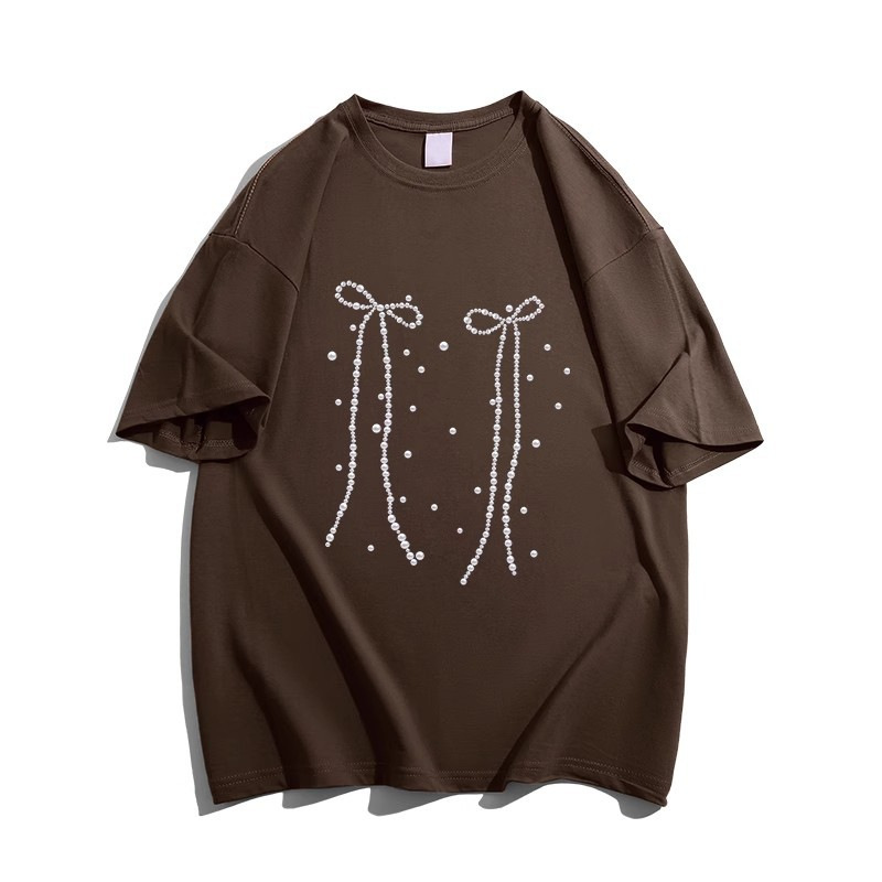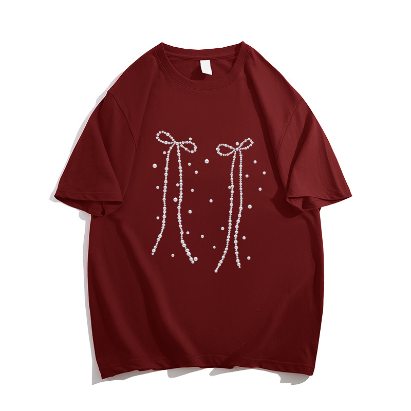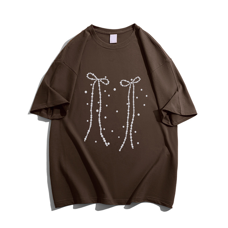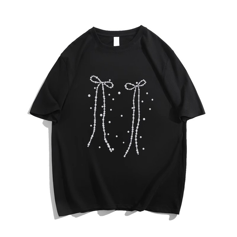 纯棉重磅蝴蝶结印花短袖t恤女新款夏季宽松慵懒风半袖上衣潮
