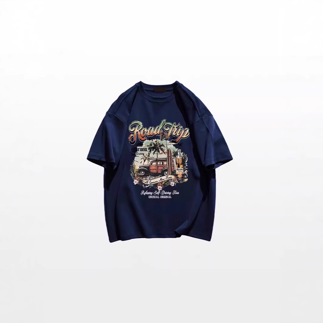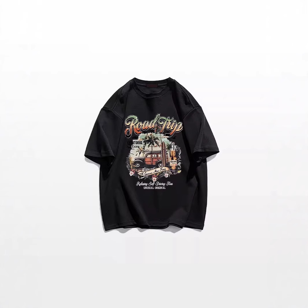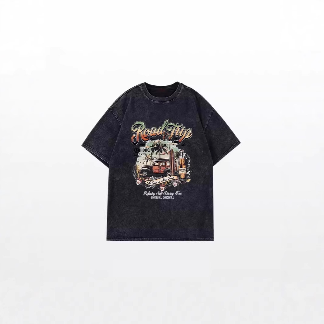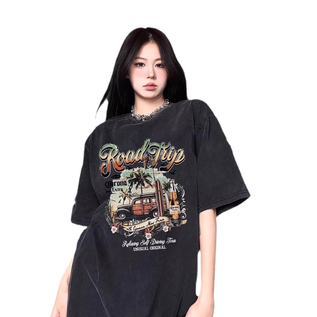 纯棉短袖t恤女潮春夏季欧美复古灰色水洗做旧宽松大版上衣情侣装