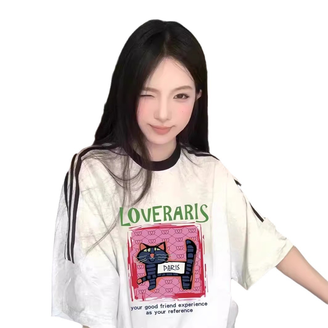 女童短袖纯棉T恤夏季新款宽松运动卡通印花上衣洋气半袖t女孩童装
