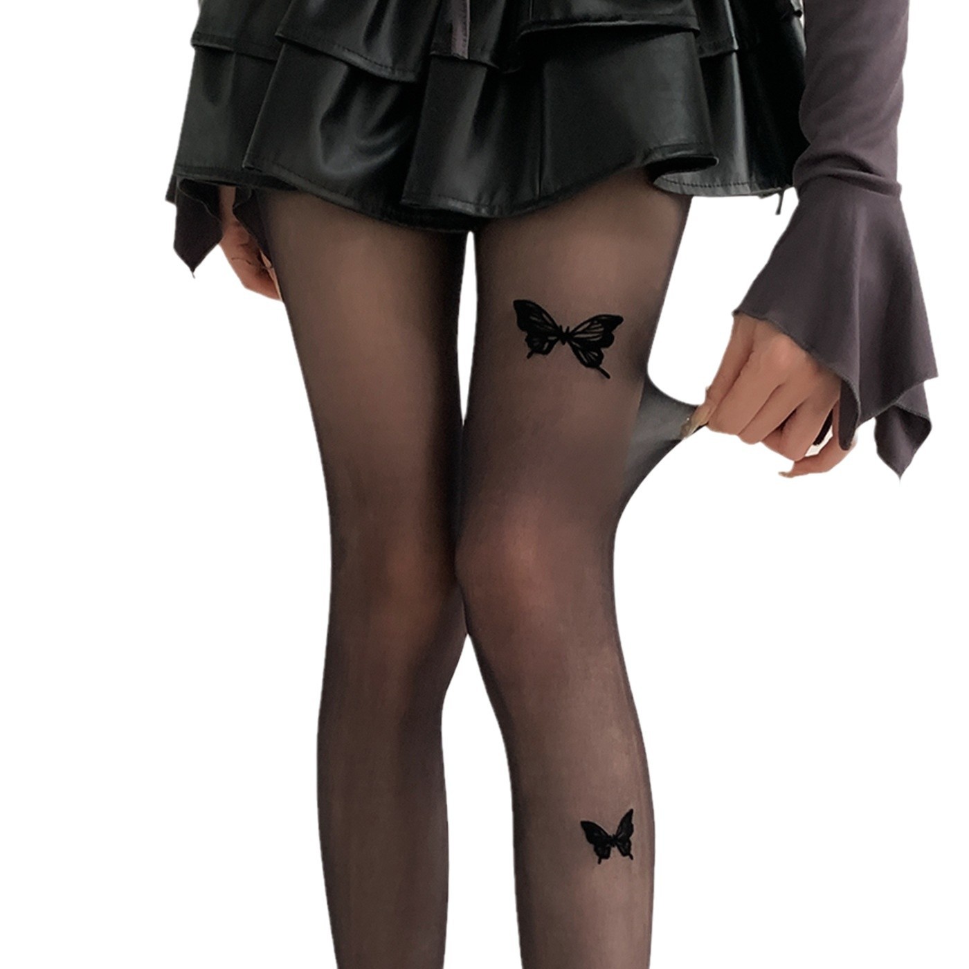 夜间教习室黑色蝴蝶结丝袜春秋款女性感黑丝连裤袜可爱印花洛丽塔