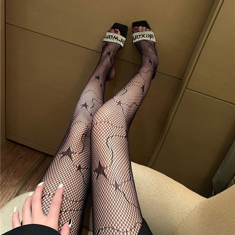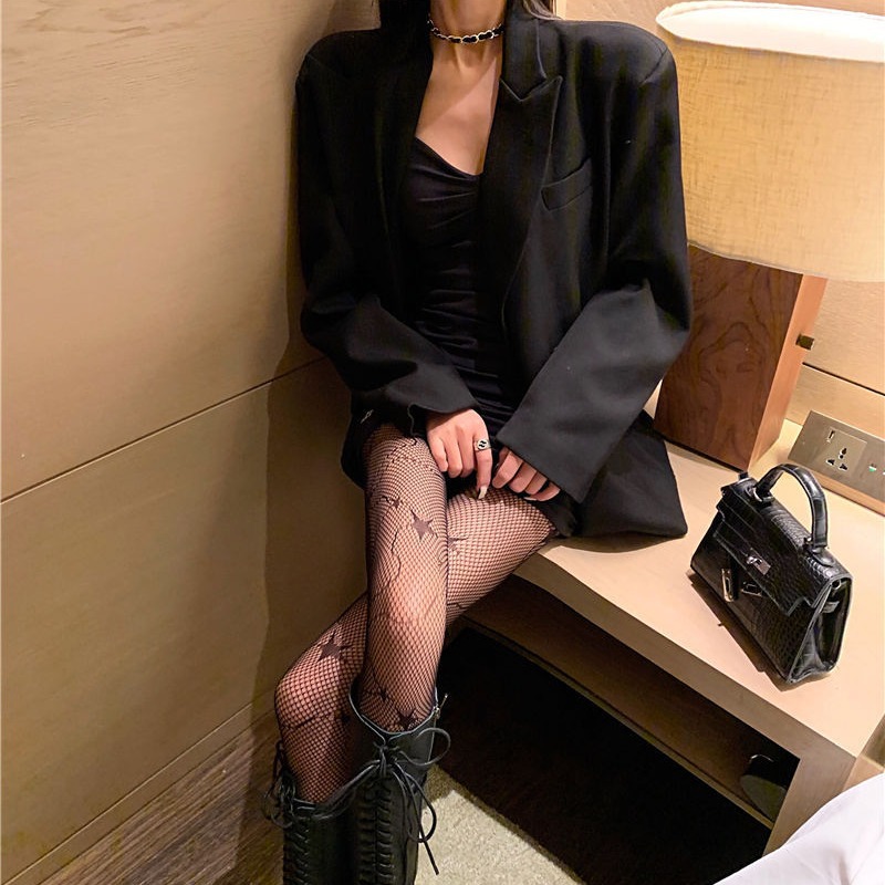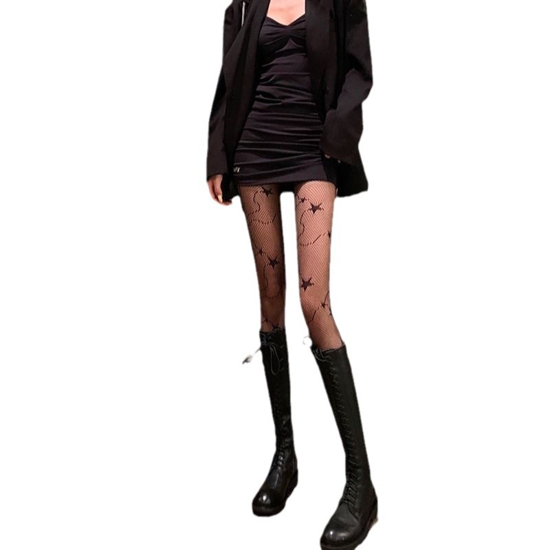 暗黑lolita菱格星星镂空黑丝渔网袜洛丽塔连裤袜萝莉薄女白丝袜