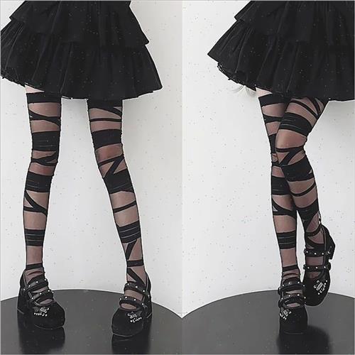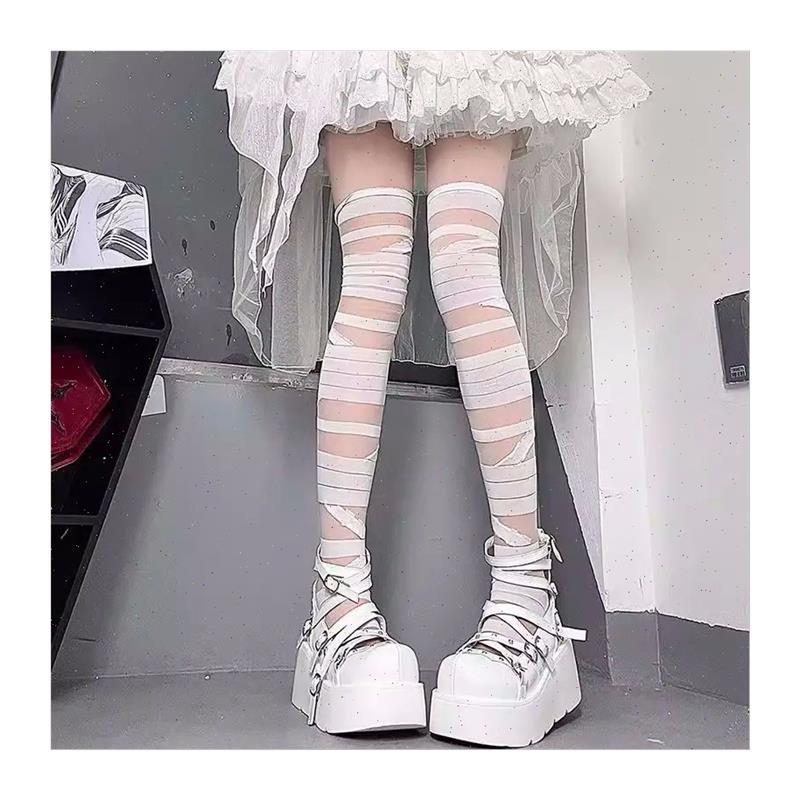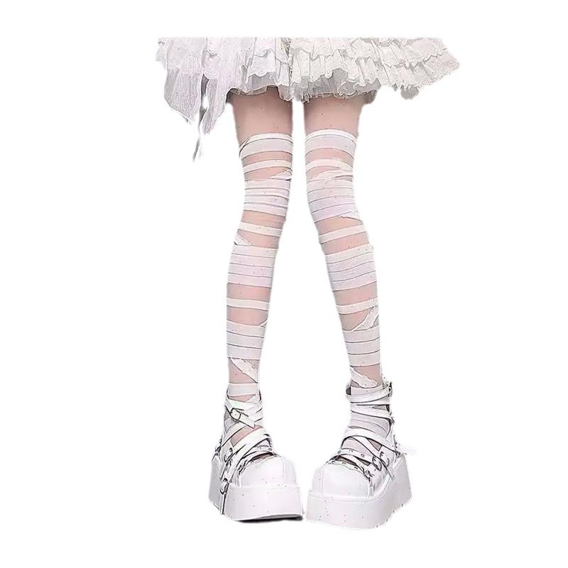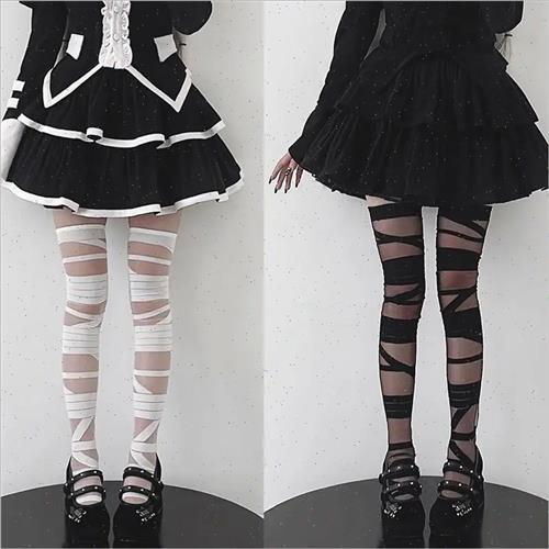 新款绑带过膝袜丝袜Lolita交叉不规则长筒过膝丝袜JK女孩长袜