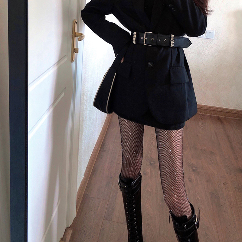 带钻丝袜网红辣妹夏季肤色夜店蹦迪烫钻镂空渔网丝袜女黑性感薄款