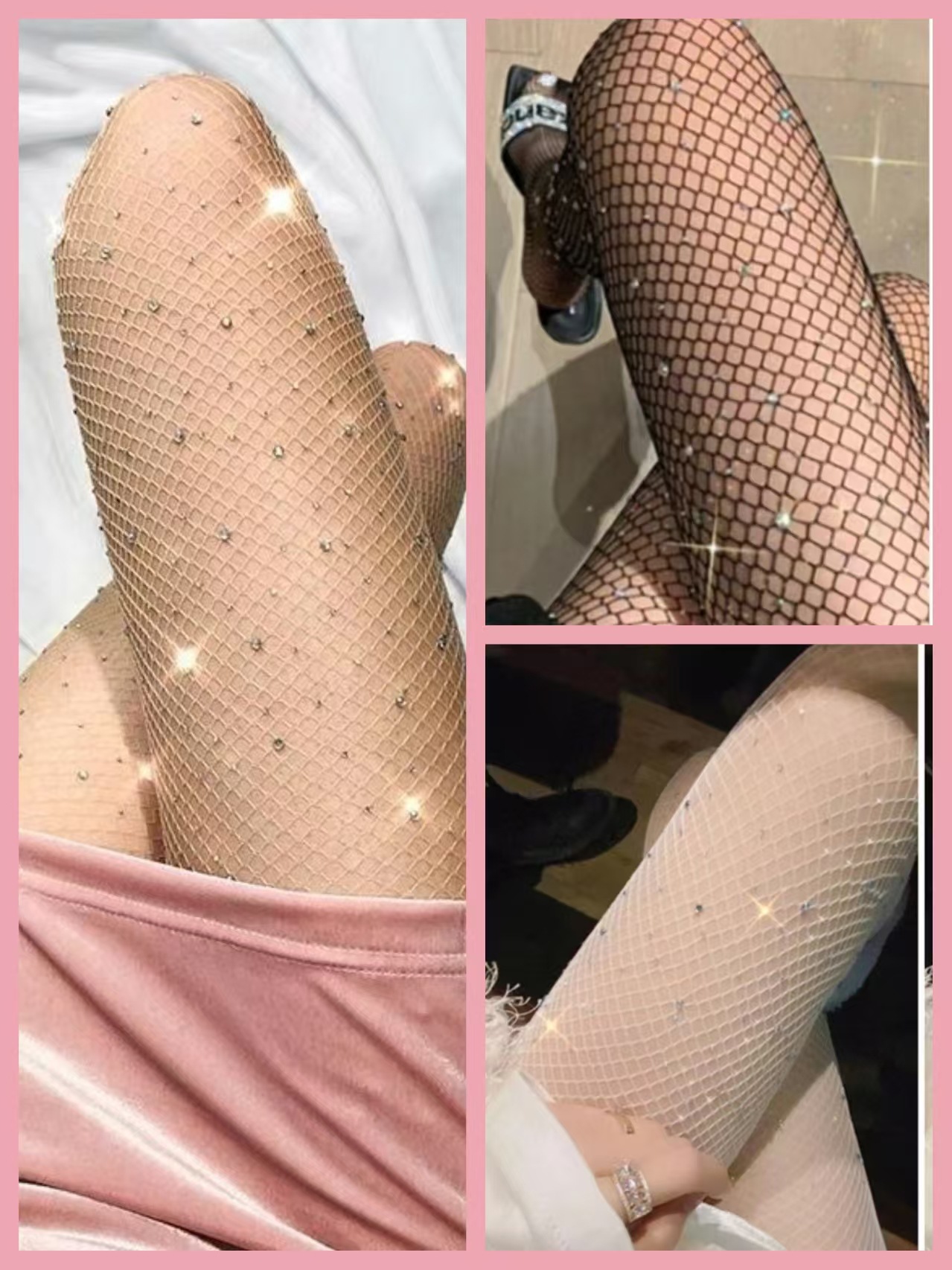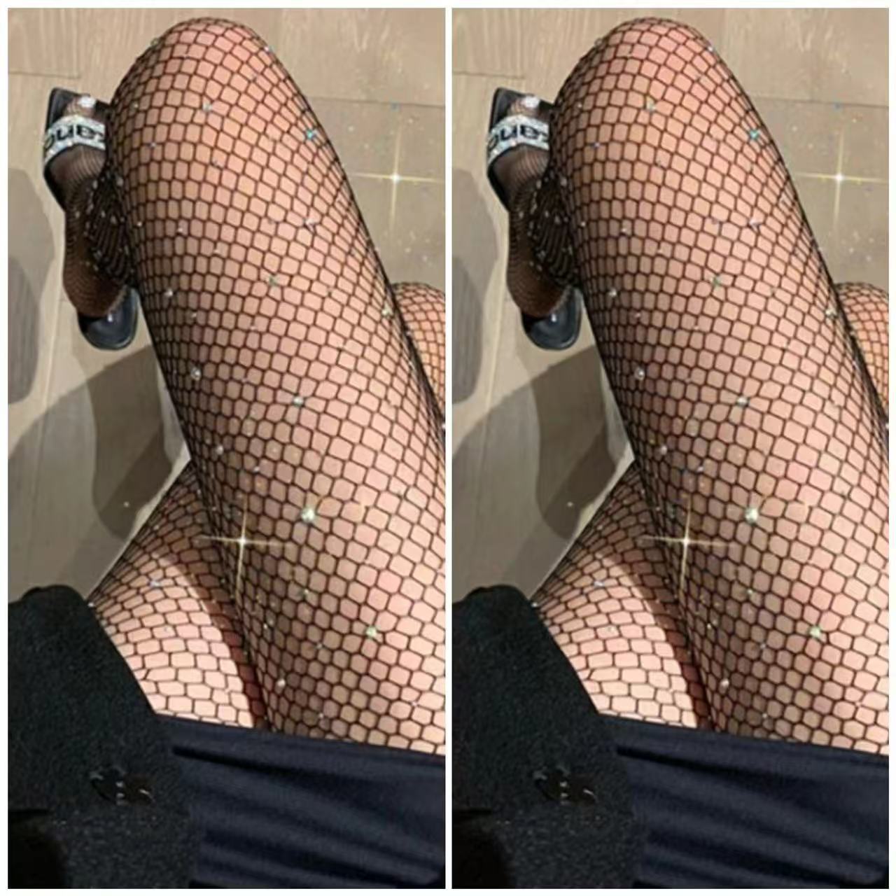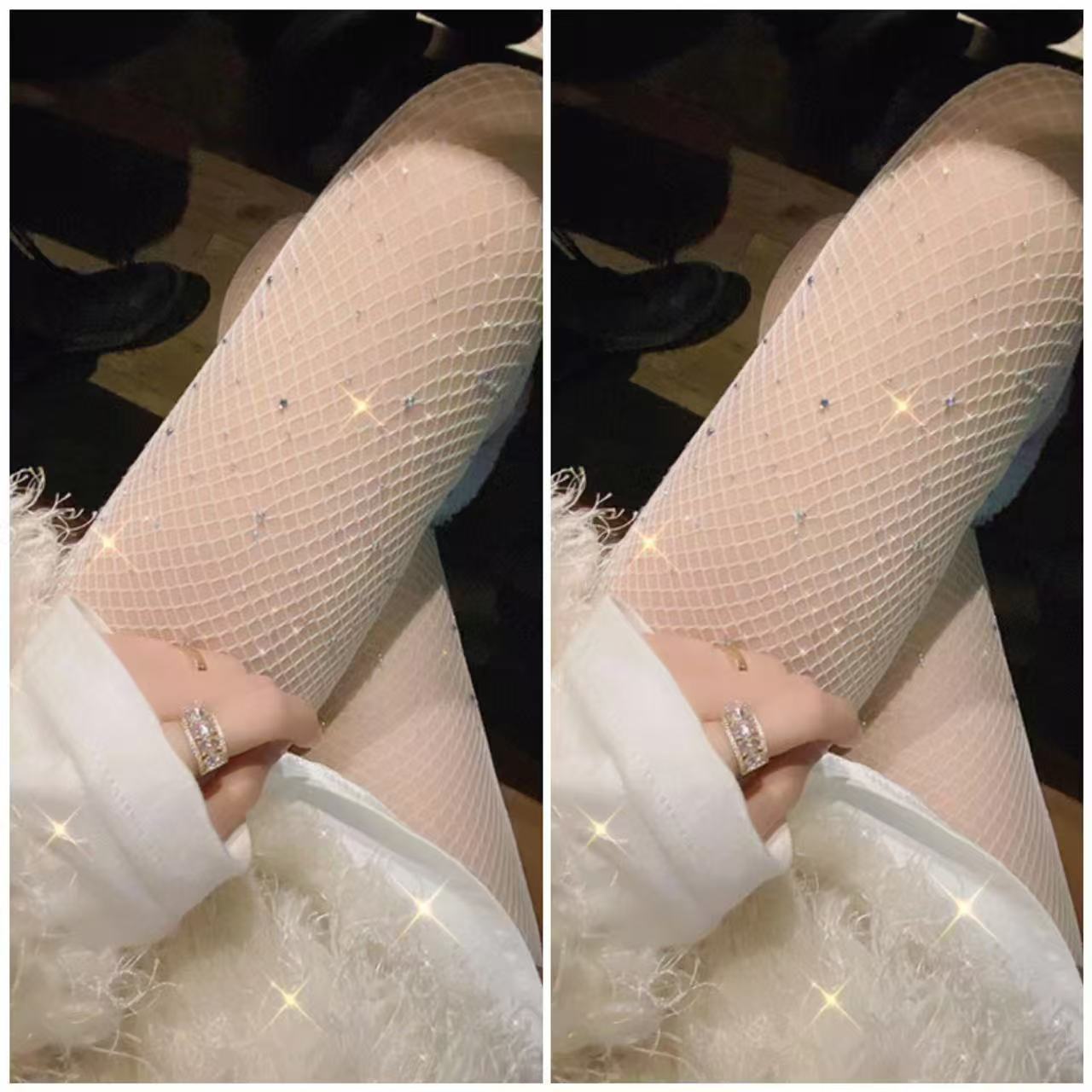 春夏季性感黑色丝袜女烫钻blingbling渔网袜日系薄款jk白色连裤袜