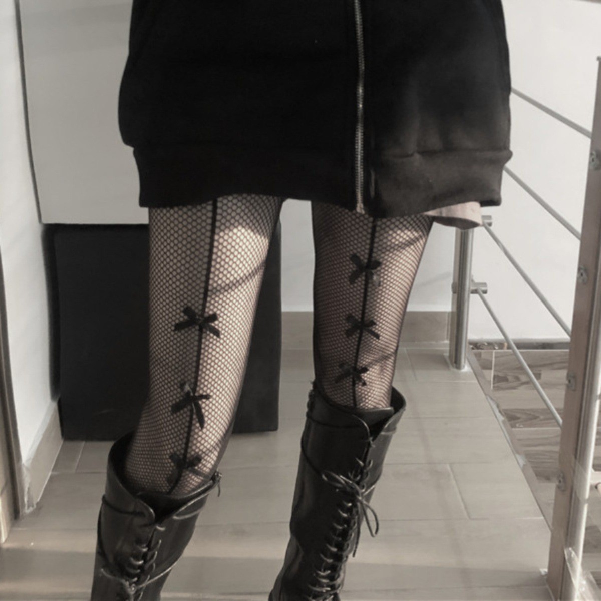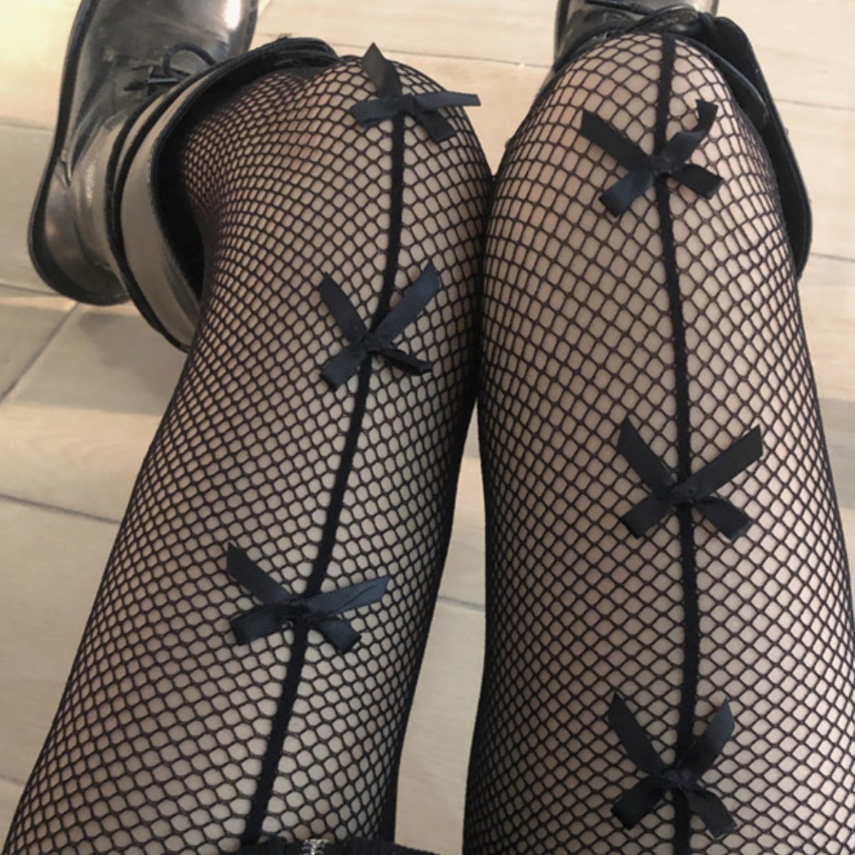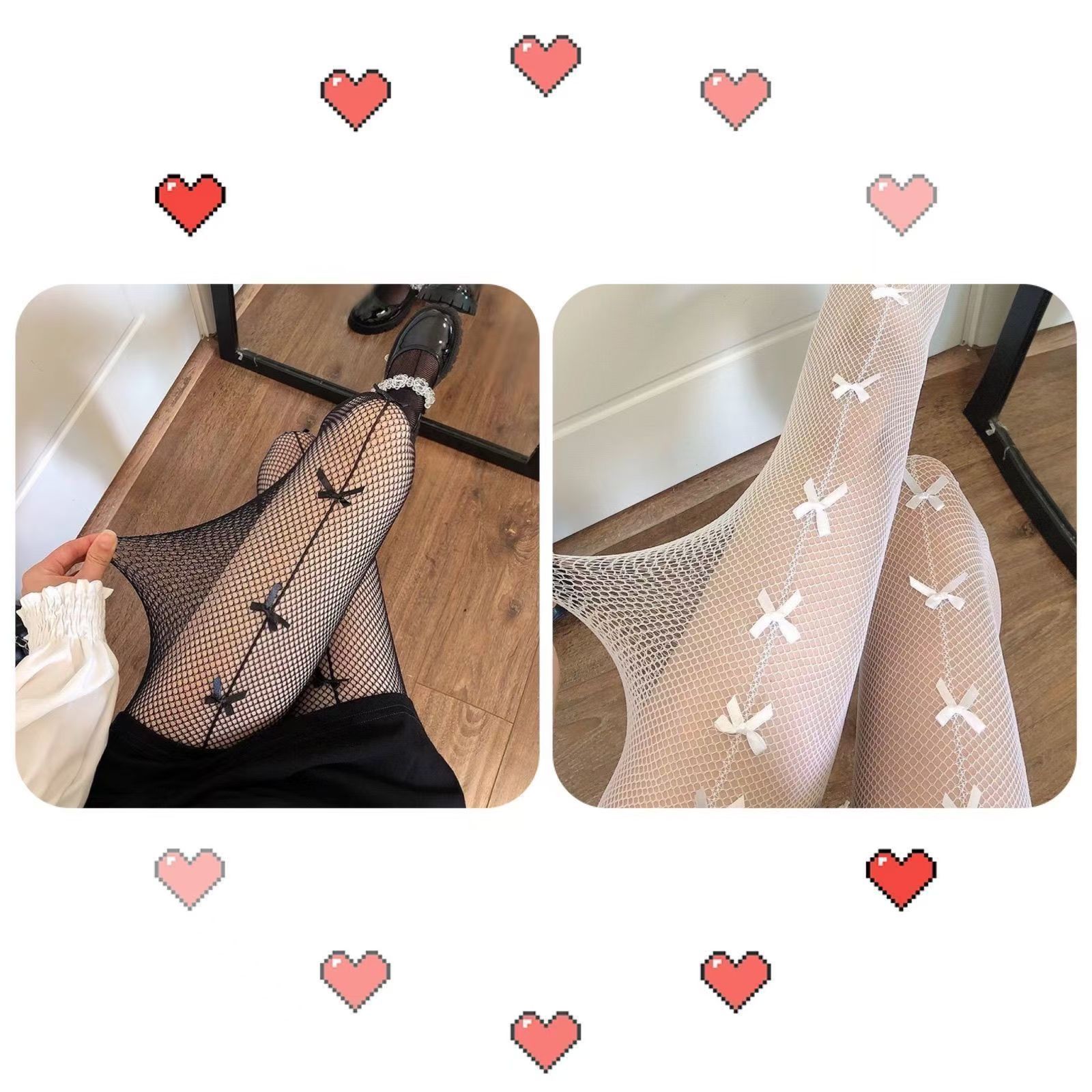 美腿提花蝴蝶结丝袜女黑色性感黑丝日系可爱萝莉连裤蕾丝渔网袜子